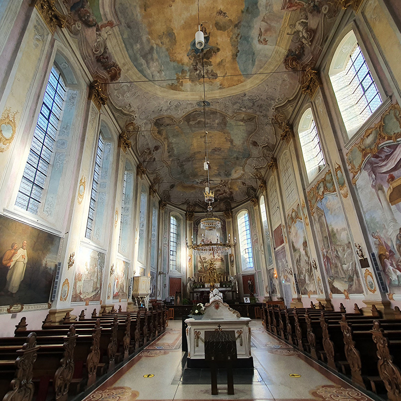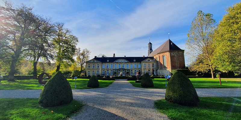 De route loopt niet naar het kasteel, maar in het kader ‘als we er dan toch zijn’, lopen we een rondje door de beeldentuin en bezoeken we de Sint Gerlachuskapel. En dat is toch echt wel even de moeite van het stoppen waard. Prachtige schilderingen uit 1751 waar veel op te zien is. Zo zien we Sint Gerlachus bij het putje, maar ook een schildering met de stromende Geul op de achtergrond. Ik vind bij dit soort monumenten het altijd mooi om te bedenken dat zoiets al meer dan 250 jaar oorlogen, ruzies en wat voor ellende dan ook heeft doorstaan en dat we moeten koesteren dat we zulke bijzondere monumenten in ons land hebben.