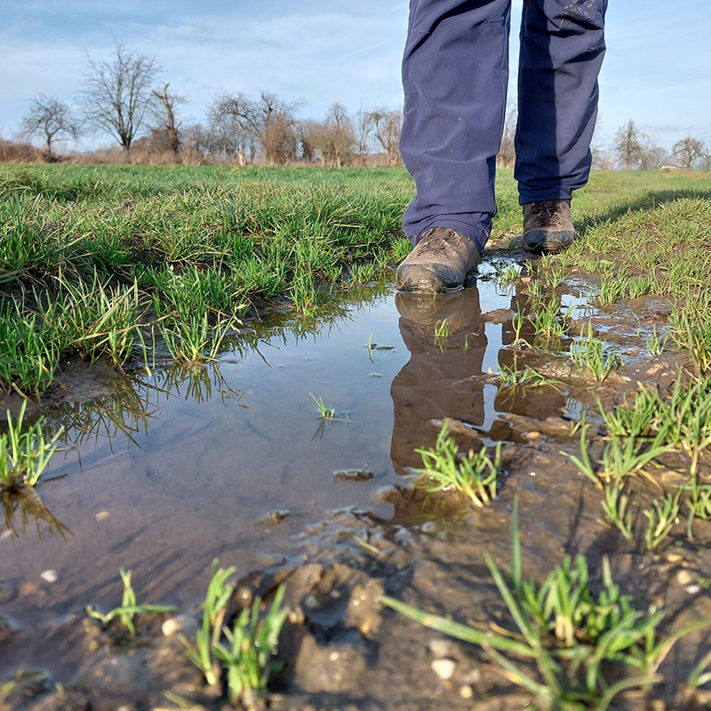 Aan deze ganzen geen gebrek; in een plasdras stukje zitten er tientallen hun kostje bij elkaar te scharrelen. Er vliegen putters weg, zij komen af op de zaadbollen van de grote kaardenbol en grote klit, een distelsoort. Door het te warme winterweer zijn er ook genoeg optimistische planten die al of nog steeds bloeien. We zien onderweg duizendblad, witte en paarse dovenetel, paardenbloemen, madeliefjes, boterbloemen en de eerste sneeuwklokjes. Ook de mollen zijn erg actief. Ze maken ondergrondse gangen in de dijk die om het wiel heen is gelegd.