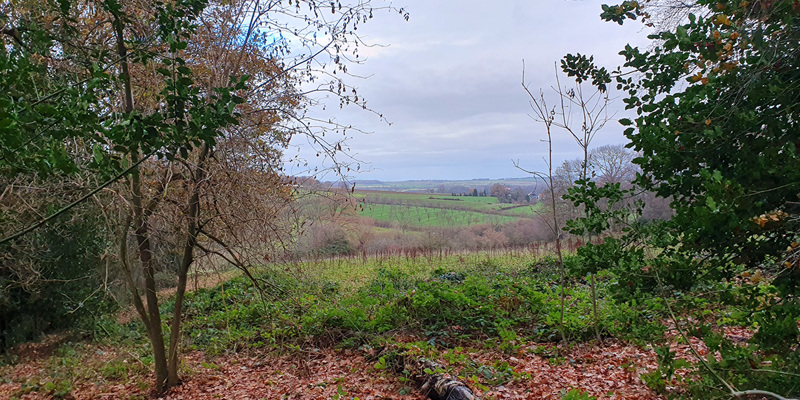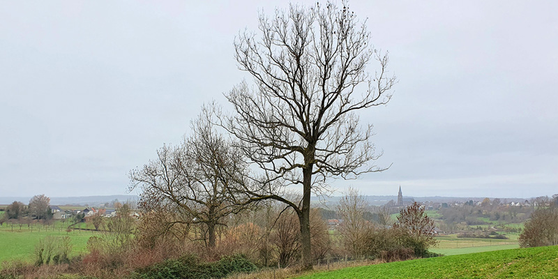 Vlak is een wandeling in het Vijlenerbos zeker niet. Geregeld gaat het pad naar beneden en dan weer omhoog. Prachtig is het uitzicht over de weilanden en akkers richting Vijlen. In de bosrand zien we zwarte vierkante buisjes. Het zijn schuil- en nestbuizen voor hazelmuizen. Deze zeldzame muis komt in Nederland alleen nog maar in het Vijlenerbos voor. Hij profiteert van de vele struiken in de bosranden. Deze zeldzame klimmer eet vooral hazelnoten en vruchten, zoals bramen.
