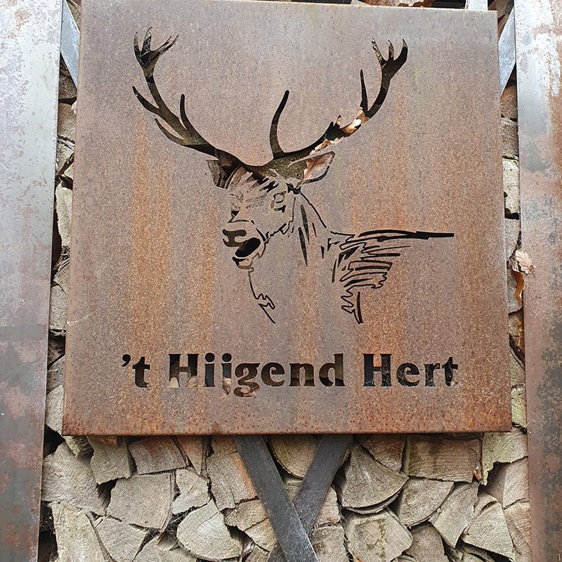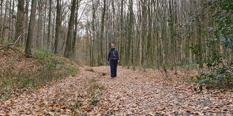 Tijd voor een pauze. Het is lunchtijd en onze magen rammelen flink. Halverwege de route trekt de warme kachel van boscafé ’t Hijgend Hert. De menukaart is een probleem, te veel lekkers. Toch lukt het om een keuze te maken en in no time staat het op tafel. We laten het ons goed smaken. Tussendoor een lunch betekent wel met een volle buik de andere helft van de route wandelen. Het is weer even op gang komen. De stilte in het bos helpt wel daarbij. Helemaal niks horen is heerlijk, dat dat nog kan. De stilte wordt wel geholpen door de lariksen. Deze boom is de enige naaldboom die zijn naalden in de winter laat vallen. We lopen op een tapijt van naalden die het geluid van onze voetstappen dempen.