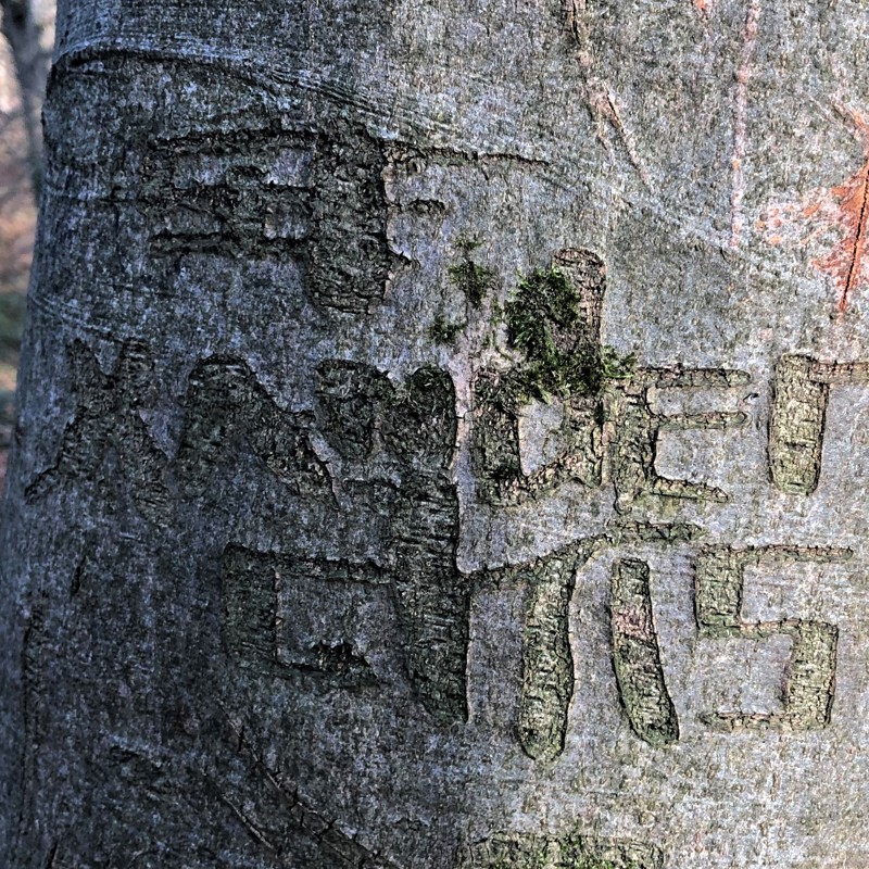 Ik hoop dat de inkervingen van mijn jonge ik vrij oppervlakkig waren. Dan is de boom hersteld van de door mij toegebrachte verwonding. Diepe inkervingen kunnen met name bij beuken de sapstroom van de wortels naar de bladeren en terug beschadigen. Ter plekke herstelt die wond nooit. Soms gaat zo'n boom zelfs dood. Met name als er grote horizontale wonden zijn gekerfd. Dan kunnen meer sapstromen onderbroken zijn en daardoor kan een hele boom afsterven. Gelukkig komt dat niet zo vaak voor.