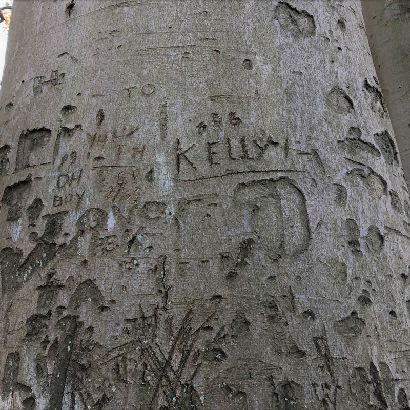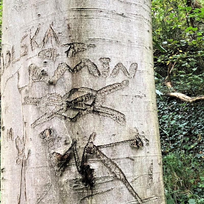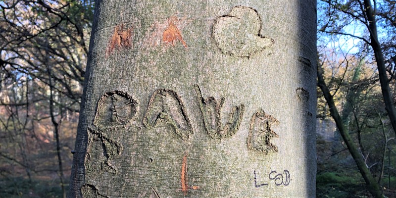 Ik geef grif toe, vroeger als kind heb ik het ook gedaan. Met mijn zakmes of de dolk die ik van mijn vader cadeau kreeg tijdens een vakantie in de Eifel mijn voornaam of mijn initialen in een beuk kerven in het Imstenraderbos of het Hambos. Jongens deden dat in mijn jeugd. Niemand van ons realiseerde zich dat deze gemaakte littekens heel lang en op dezelfde hoogte zichtbaar blijven. Misschien wel vijftig, zelfs honderd jaar.