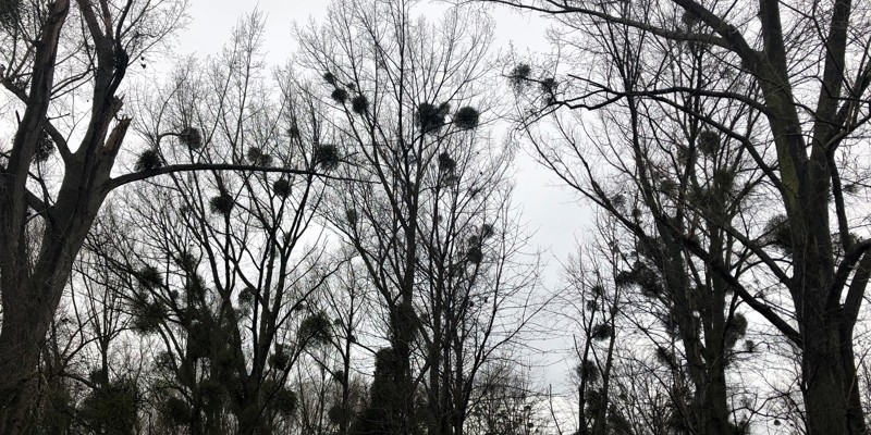 In Nederland komt de maretak vooral bij ons in Zuid-Limburg voor. Elders minder tot niet. Dat heeft met onze kalkrijke bodem te maken. Maretakken, alweer een reden om af en toe naar het zuiden af te zakken. Ik zie ze thuis in Heerlen tijdens een zondags rondje in het Aambos en Caumerbeekdal of op het mooie landgoed Terworm. Maar ook langs de Geul zie je ze vaak. Tot 2017 was de maretak in Nederland wettelijk beschermd, maar nu er zoveel zijn is dat niet meer nodig. Met name in Zuid-Limburg lijkt op sommige plaatsen sprake van een ware maretakkenplaag.