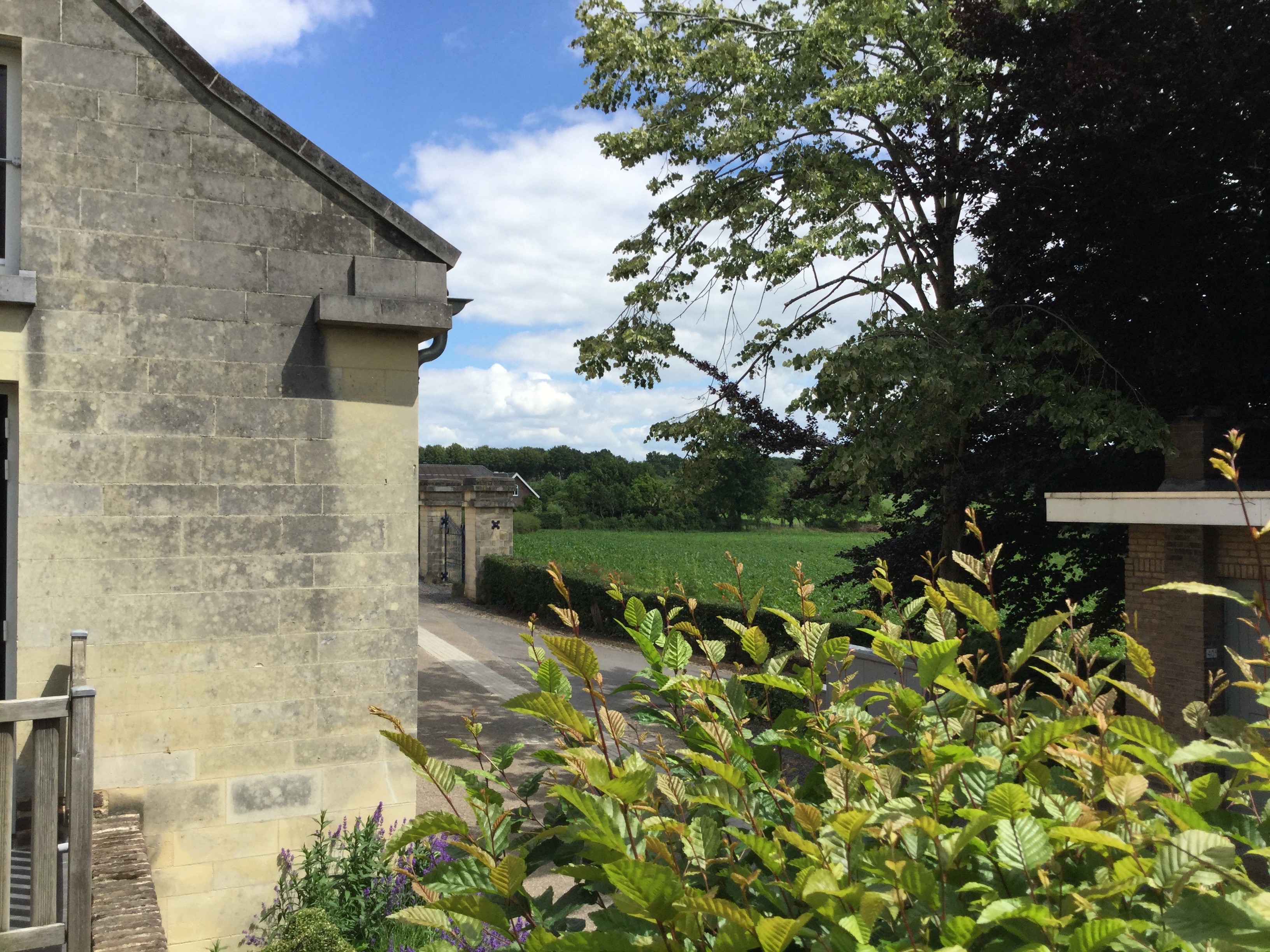 Deze zitgelegenheid geeft je uitzicht op de schapen en de fruitweide en bevindt zich aan de achterkant van de karakteristieke carréboerderij.