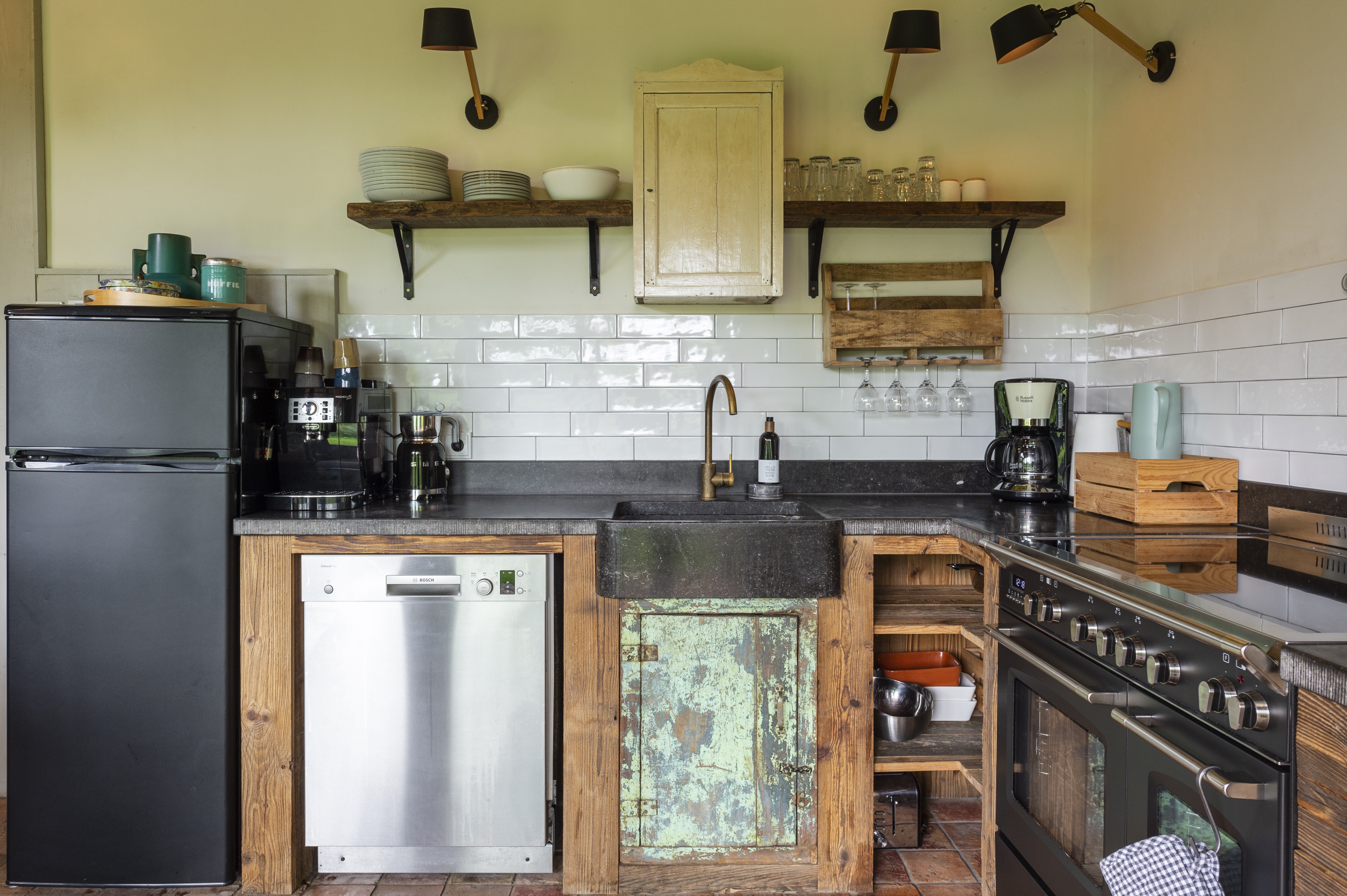 Binnen vind je een knusse woonkamer met houtkachel, een keuken met Boretti inductiekookplaat en vaatwasser, twee slaapkamers en een luxe badkamer met gietijzeren bad en vloerverwarming.