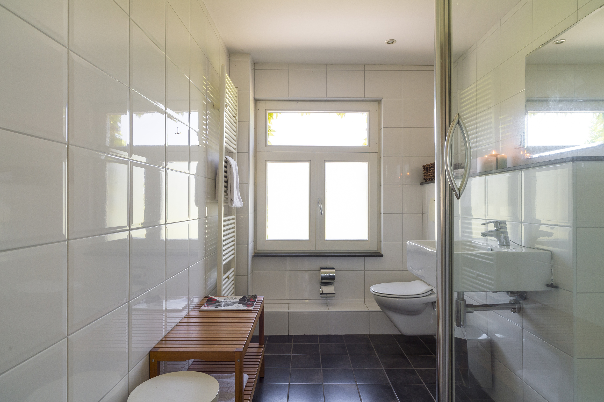Aan de lange eettafel dineer je samen uitgebreid. Er zijn zes slaapkamers, drie badkamers en een apart toilet. Aan de Geul ligt een zonnig loungeterras met uitzicht op water en natuur.