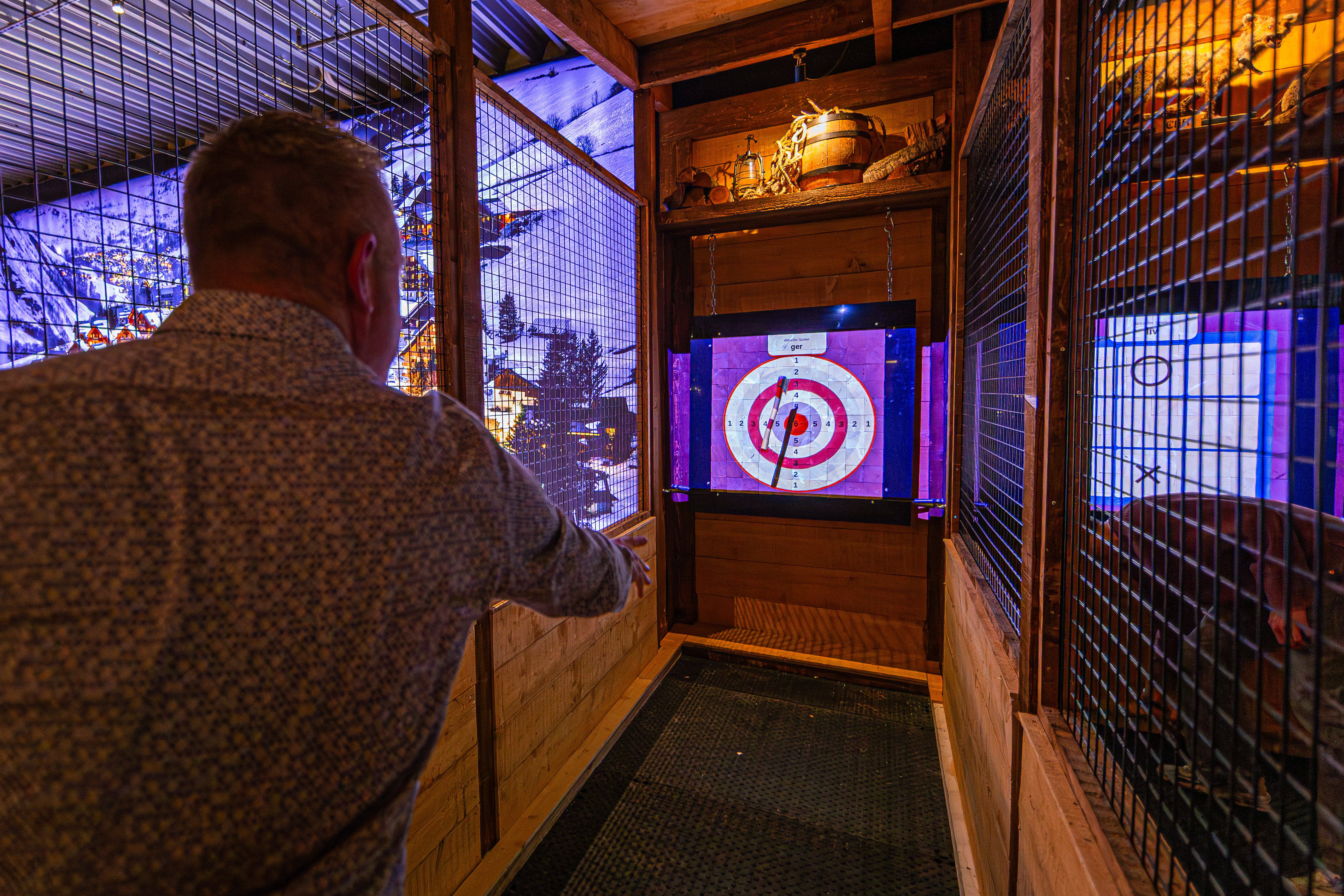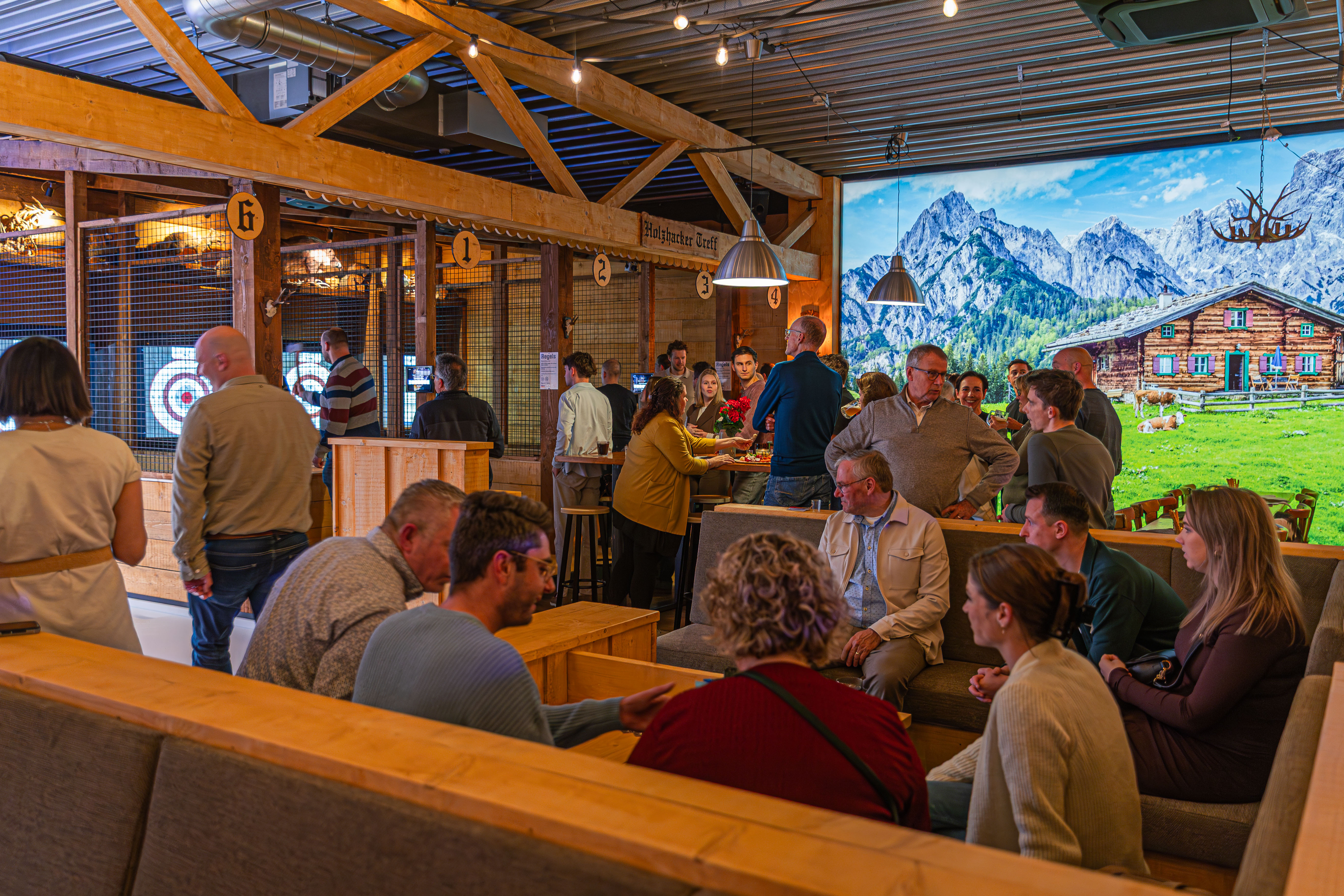 Bijlwerpen in de Allm in Hütte voelt alsof je een bergdorp binnenstapt. De houten structuur, winterse details en gezellige sfeer zorgen ervoor dat jij en je groep meteen in de juiste stemming komen. Zo wordt bijlwerpen niet alleen leuk, maar ook een echt bijzondere groepsbeleving.