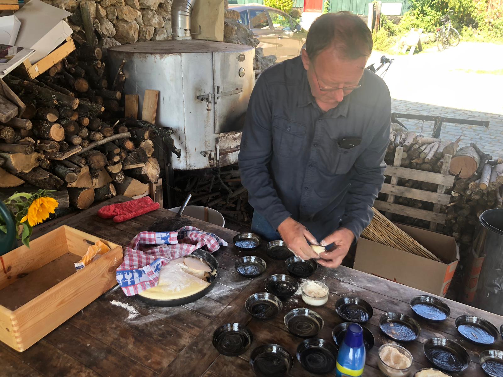 Is alles voorbereid? Dan stel je je eigen pizza samen en schuif je die in de houtoven. Binnen vijf minuten is de pizza klaar om op het terras, met uitzicht over het Geuldal, op te eten.
