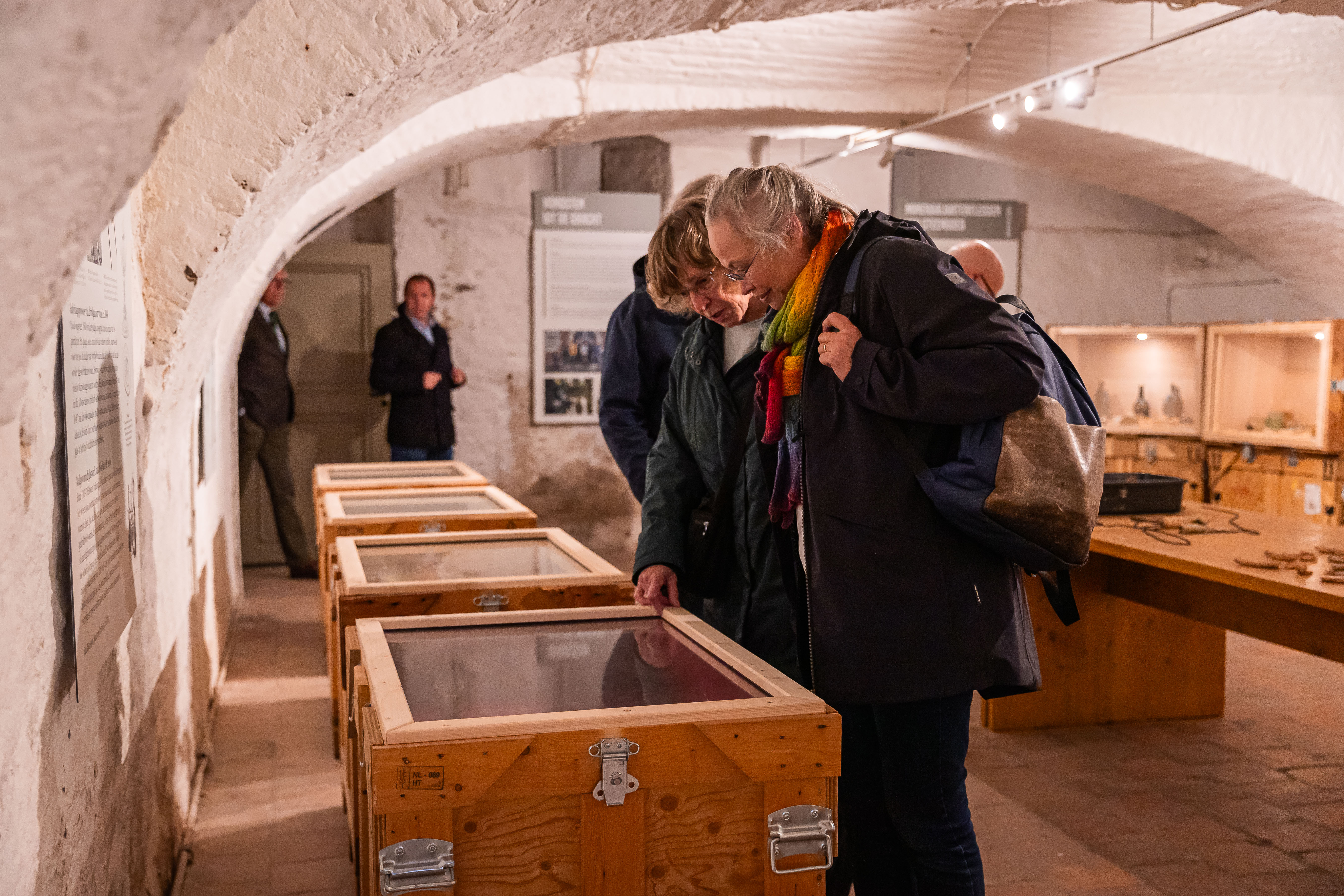 Loop door het ondergrondse keldergewelf van de hoofdburcht, dat dateert uit de 11e eeuw. Ontdek meer over de verbouwing van de ronde donjon, de verwoesting van het kasteel tijdens de Tachtigjarige Oorlog en de inval van de Fransen in de 18e eeuw.