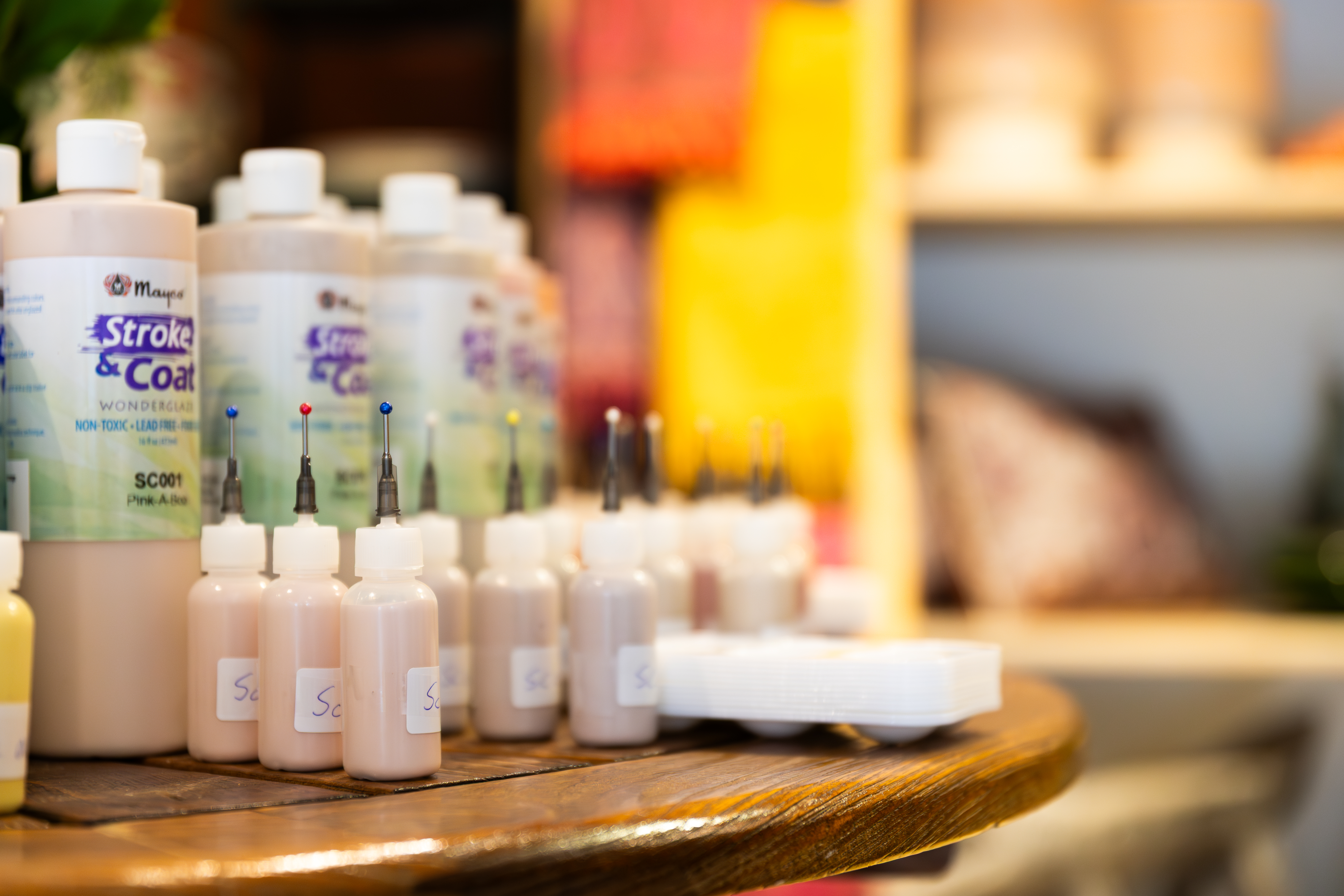 Stel je voor: een tafel vol kleuren, fijne muziek op de achtergrond, een kop thee/koffie in je hand en een keramiek-item dat wacht op jouw persoonlijke touch.