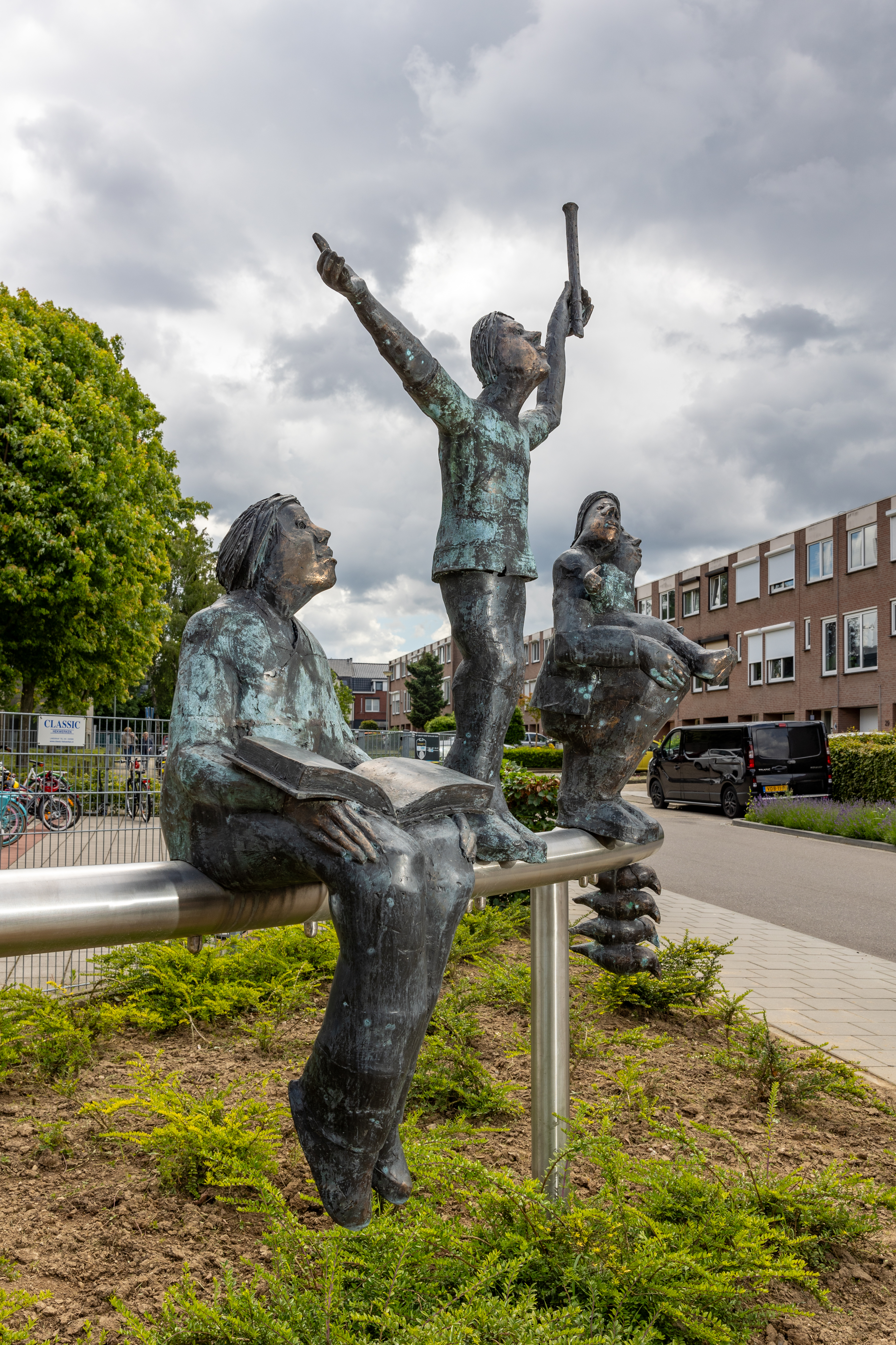 Maar, ‘An de Voeëgelsjtang’ kan ook letterlijk gezien worden als een tak waar een aantal vogeltjes kwetterend naast elkaar zitten. Het beeld wordt sterk beïnvloed door de functies van het Multi Functioneel Centrum en de directe omgeving.