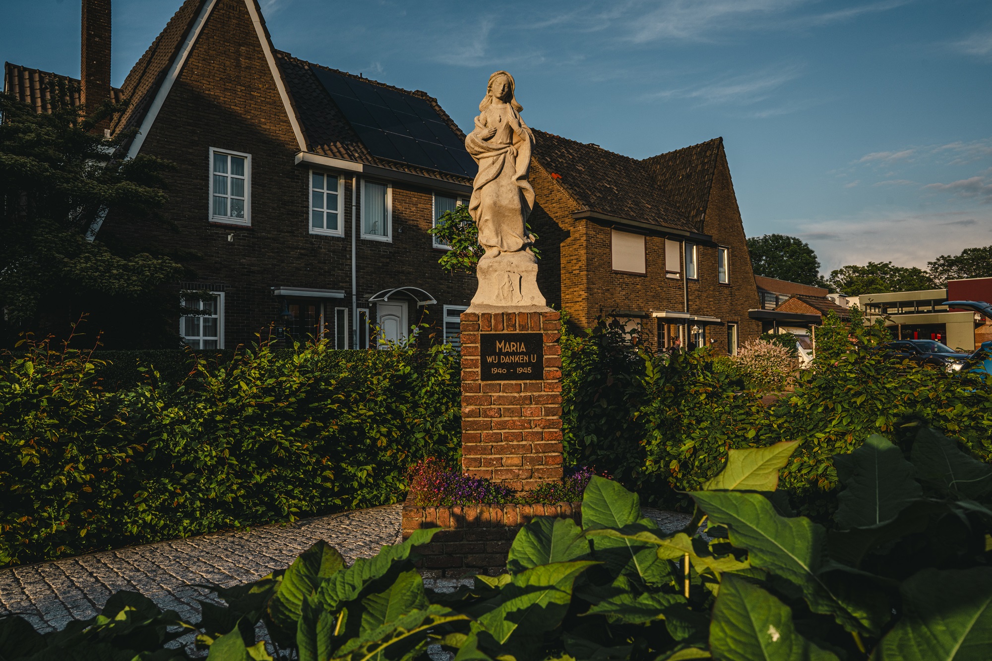 Mariabeeld, opgericht uit dankbaarheid voor de zo zichtbare