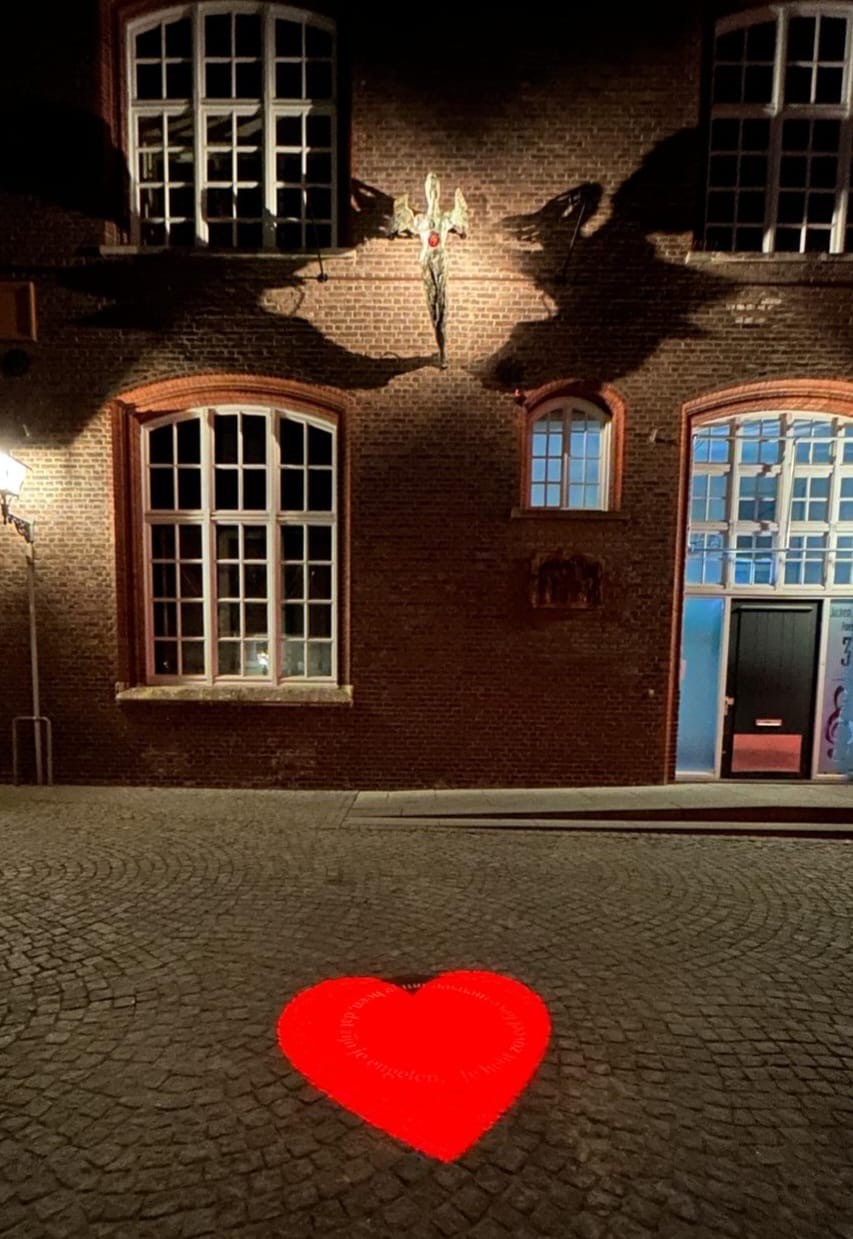 de dichtregel uitgelicht middels een rood hart. De plaquette, zijnde een