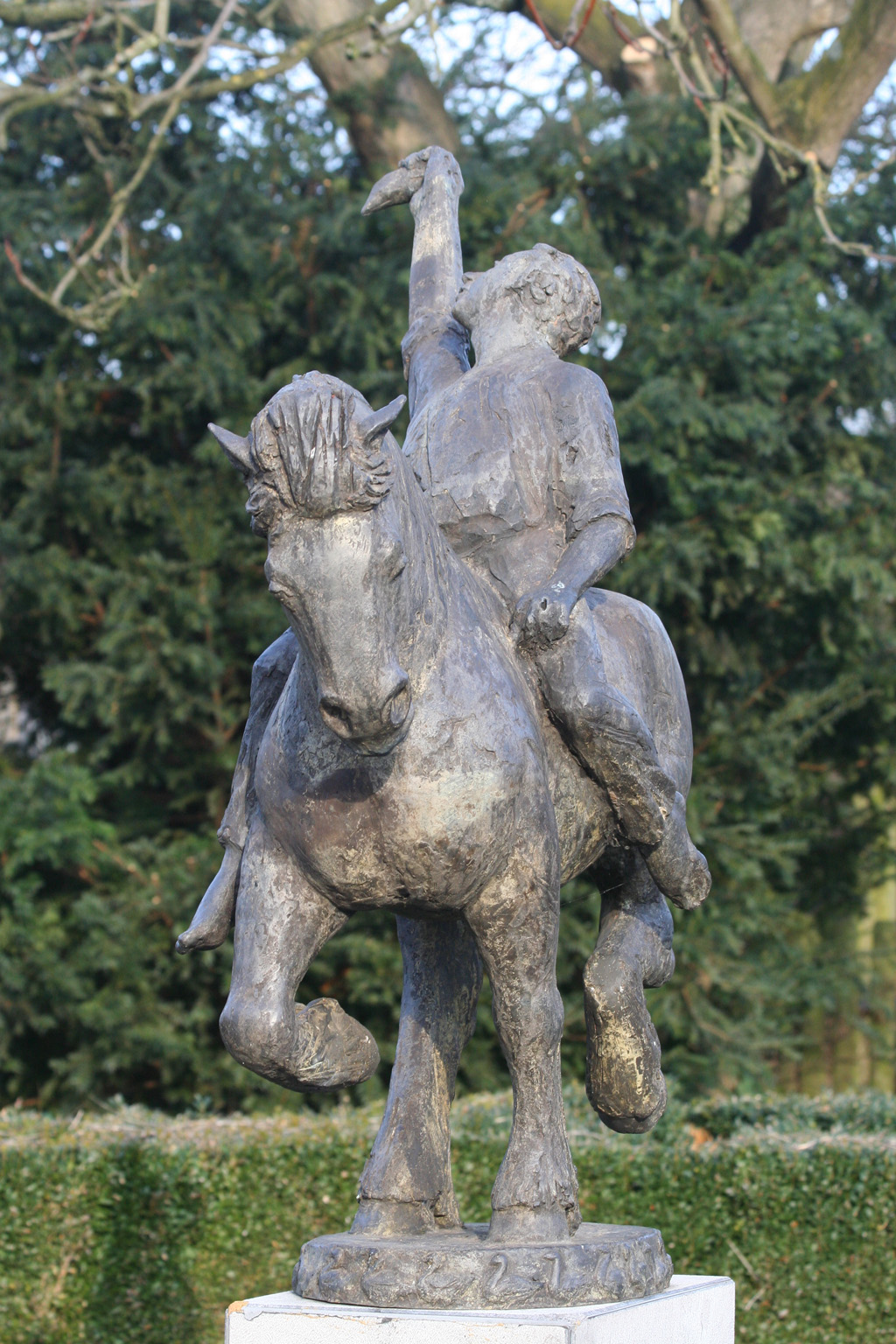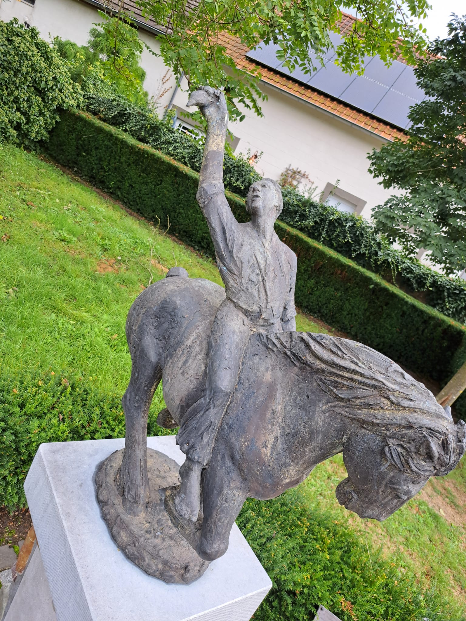 in een klein plantsoentje staat een beeld van bescheiden formaat. Een man