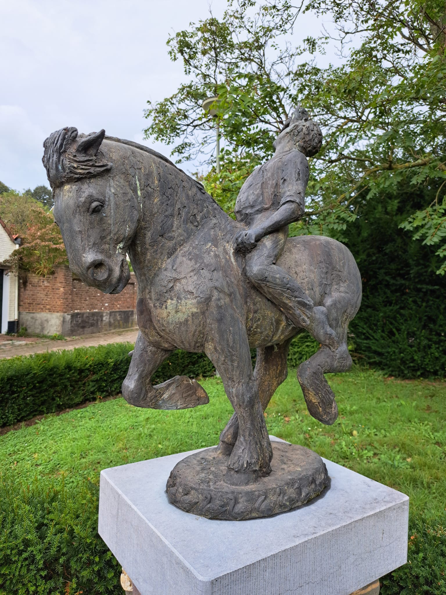 paard en de man staan op een kleine ronde schijf van brons. Deze schijf is