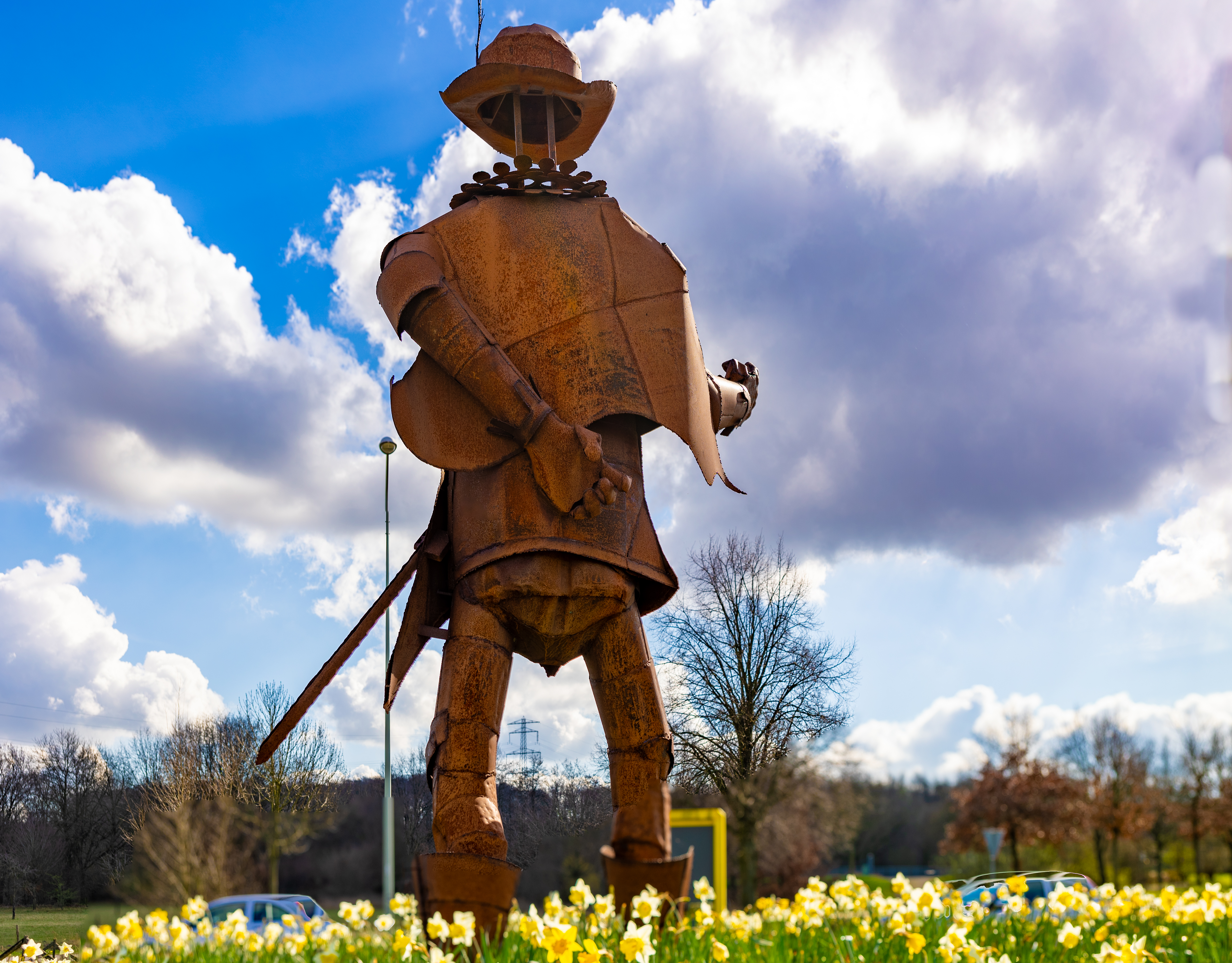 De circa 4,5 meter hoge sculptuur van de Belgische kunstenaar Bruno Plaghki, is een moderne interpretatie van een man die we wel van zijn historische wapenfeiten maar niet als persoon kennen.