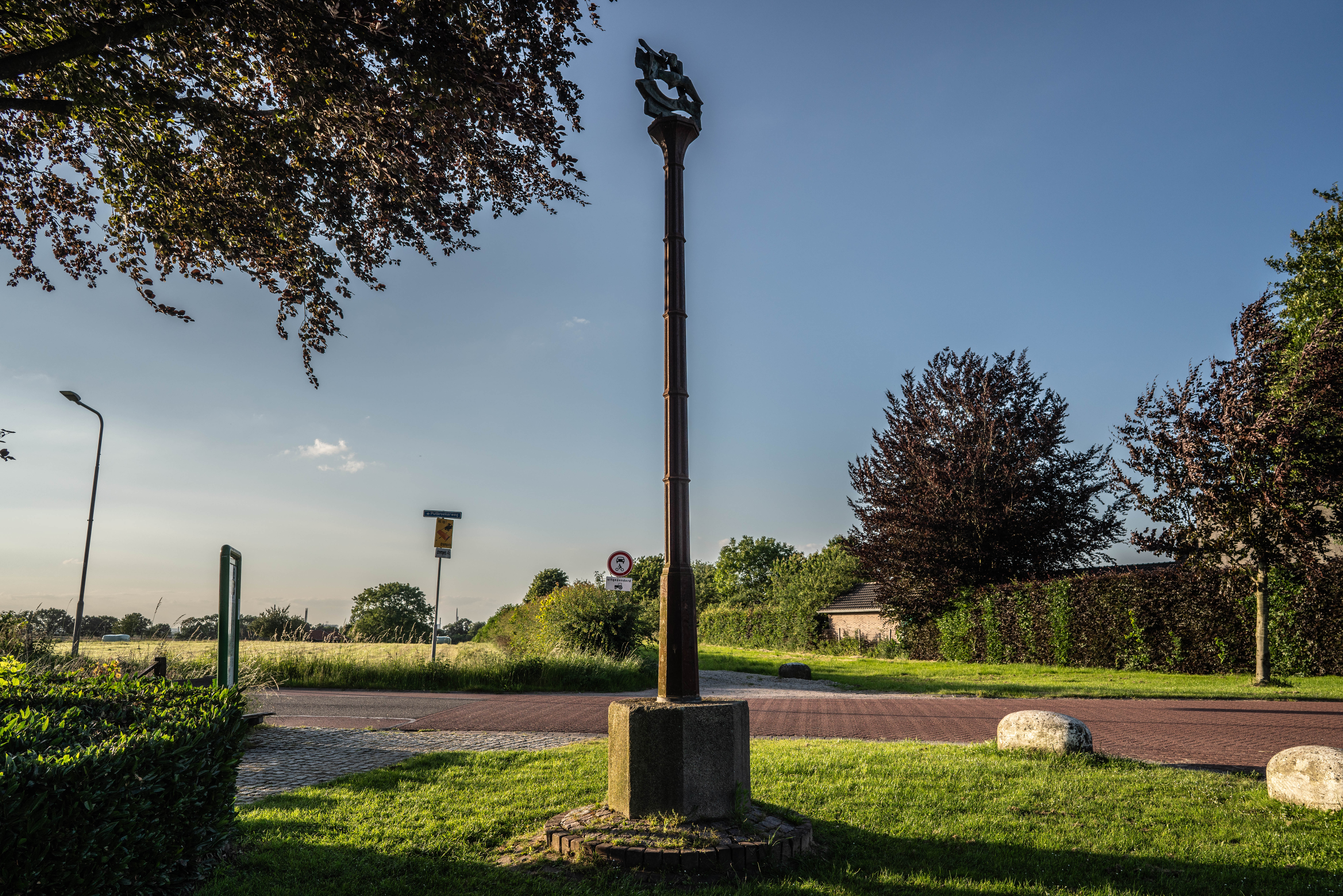 Verbeeldt de kernen Groot- en Klein Genhout. Een engel zweeft over het plateau van Schimmert waarop Genhout gelegen is.