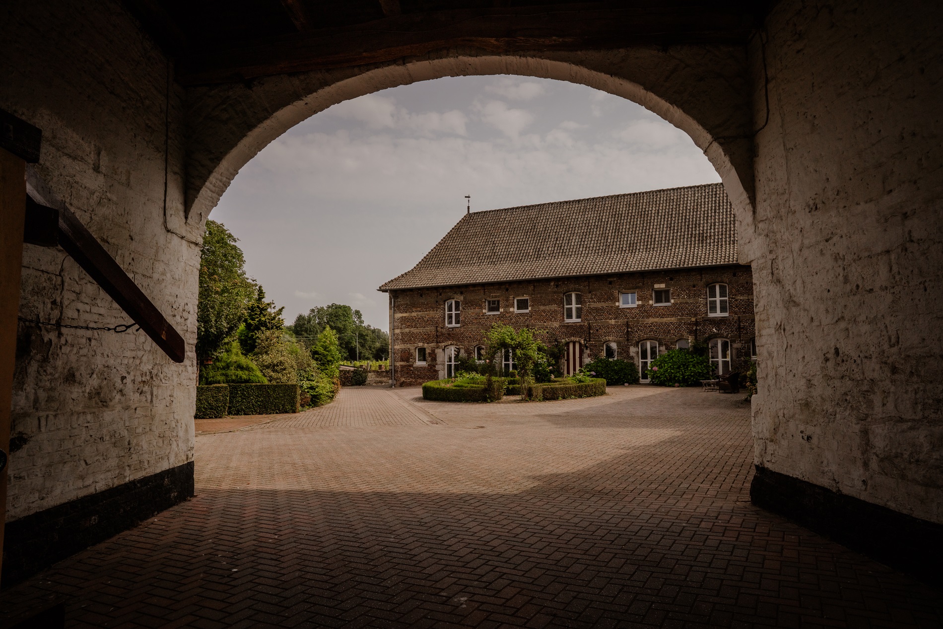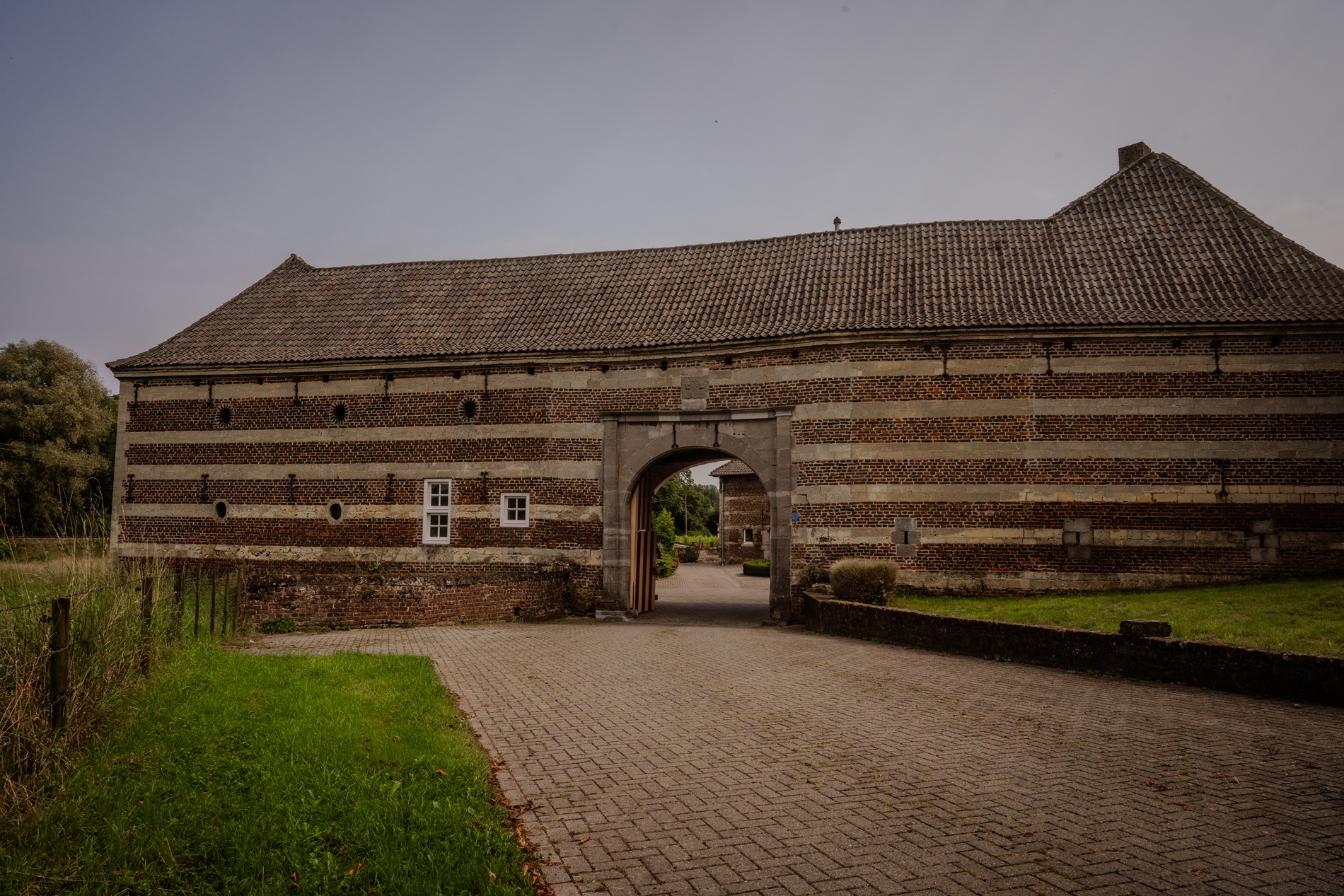 maakten ooit indruk met hun hoog dak, ondersteund door rijke bintwerken. Een vleugel van het huis, opgetrokken in baksteen met banden