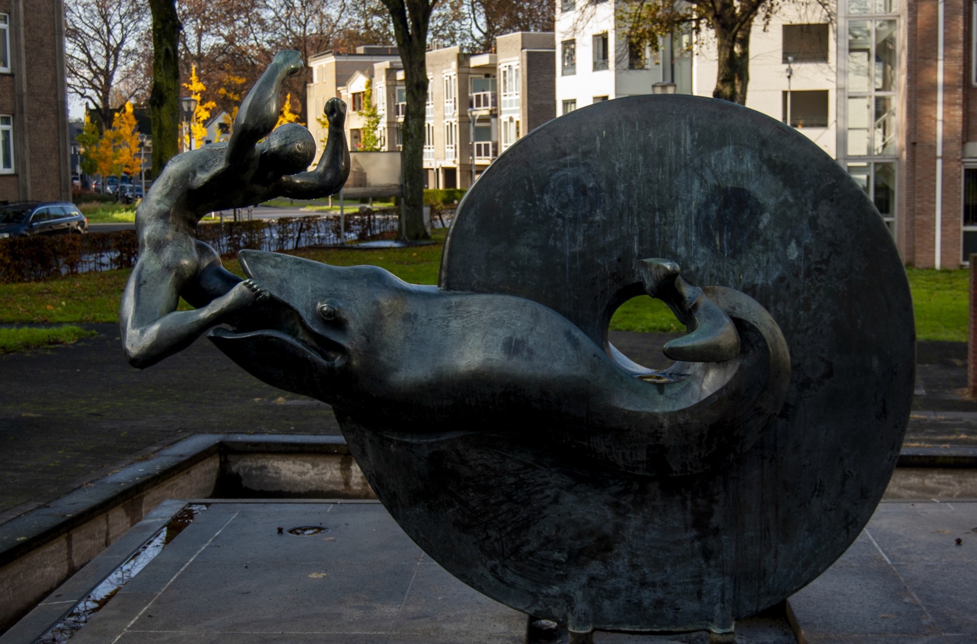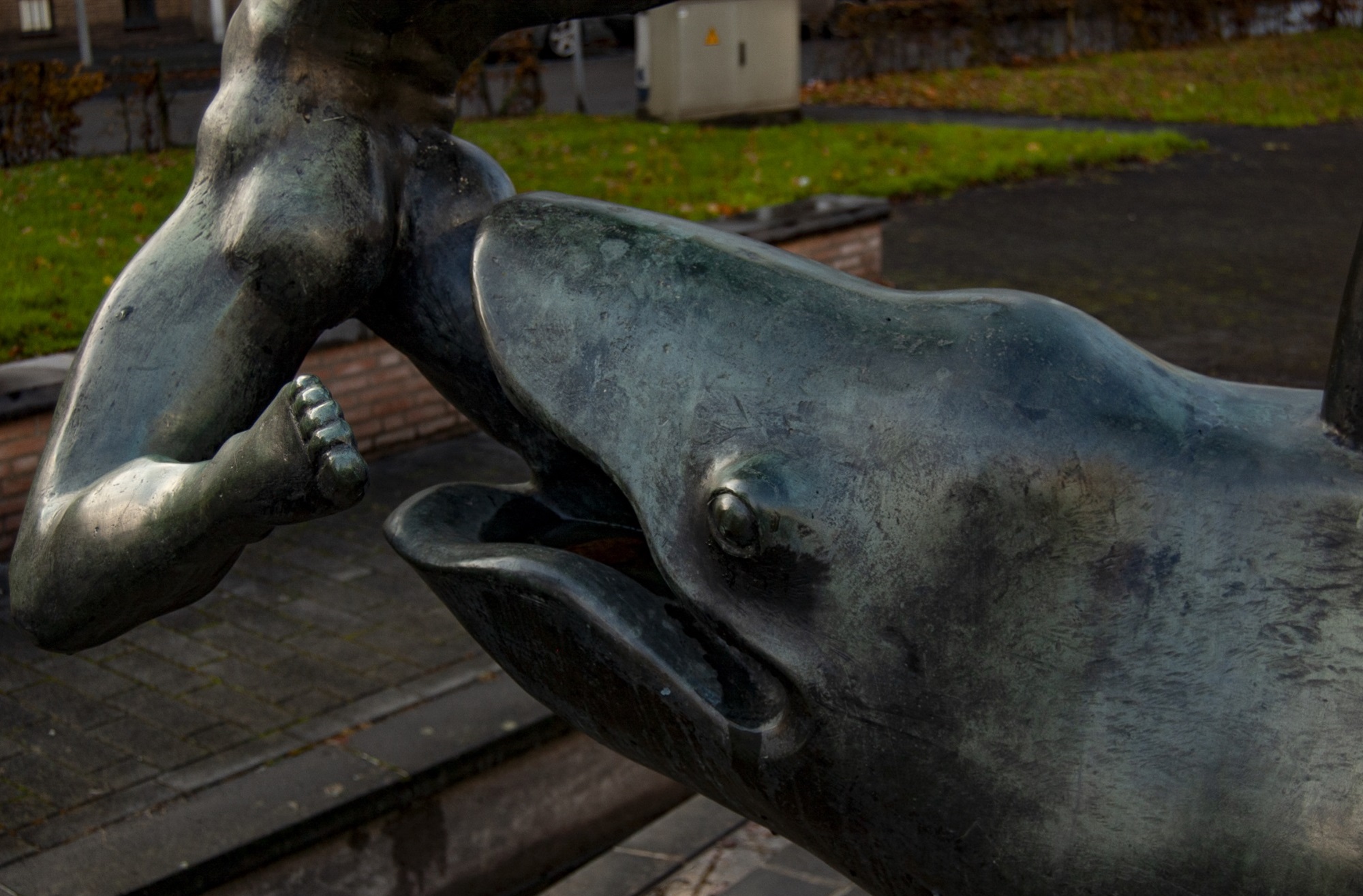 standbeeld toont het Bijbelse verhaal van Jonas, die volgens de Bijbel in de