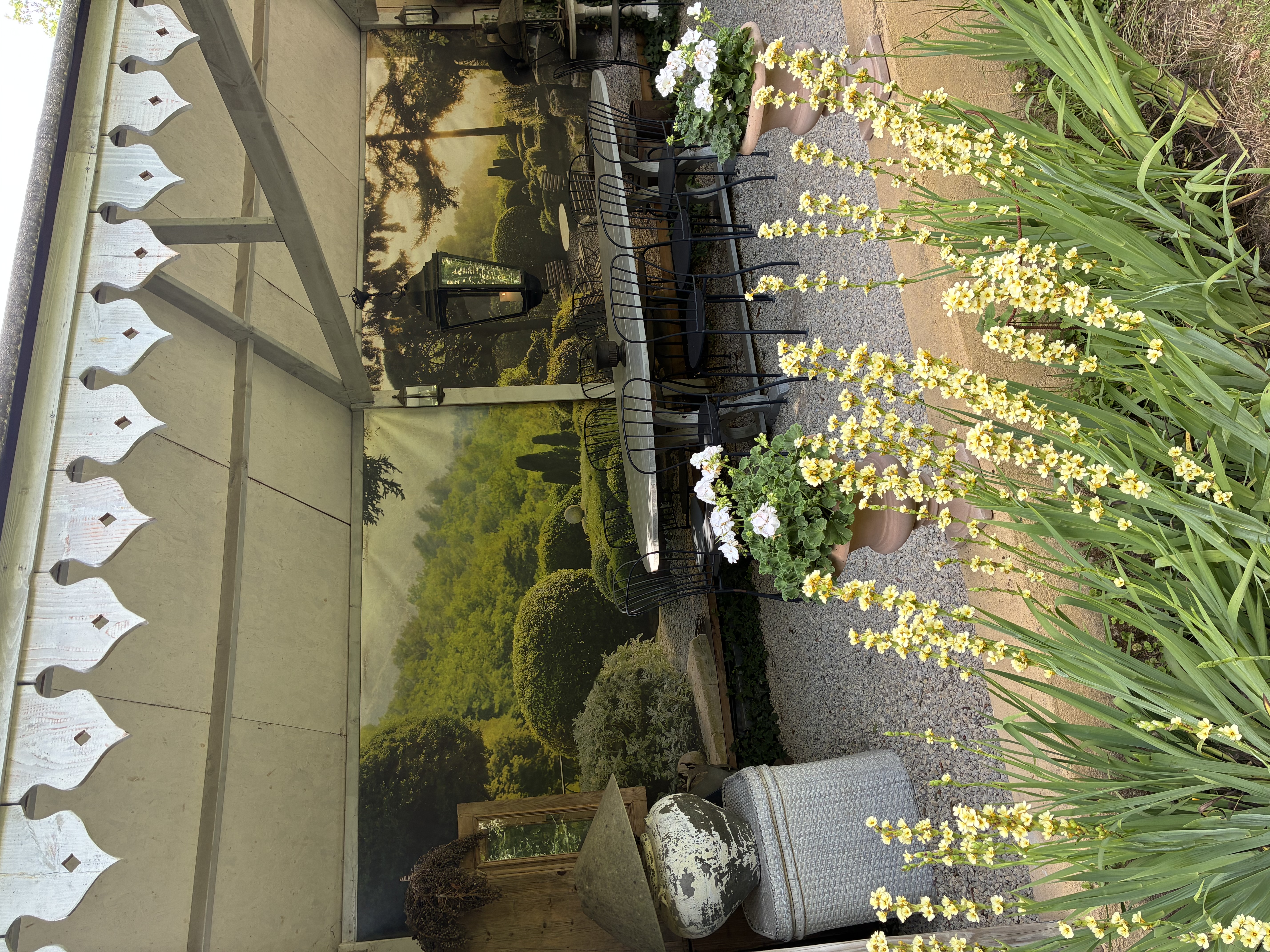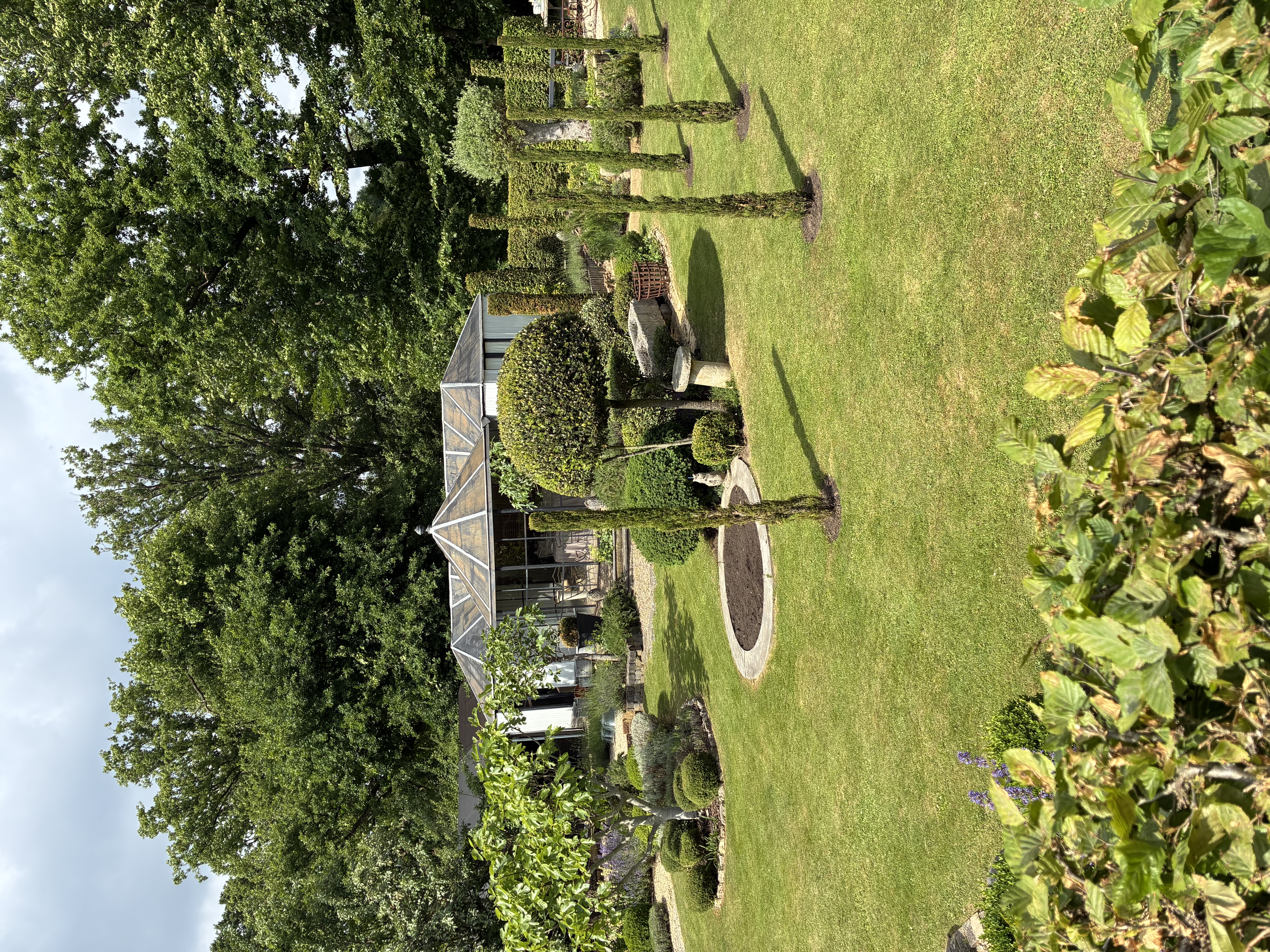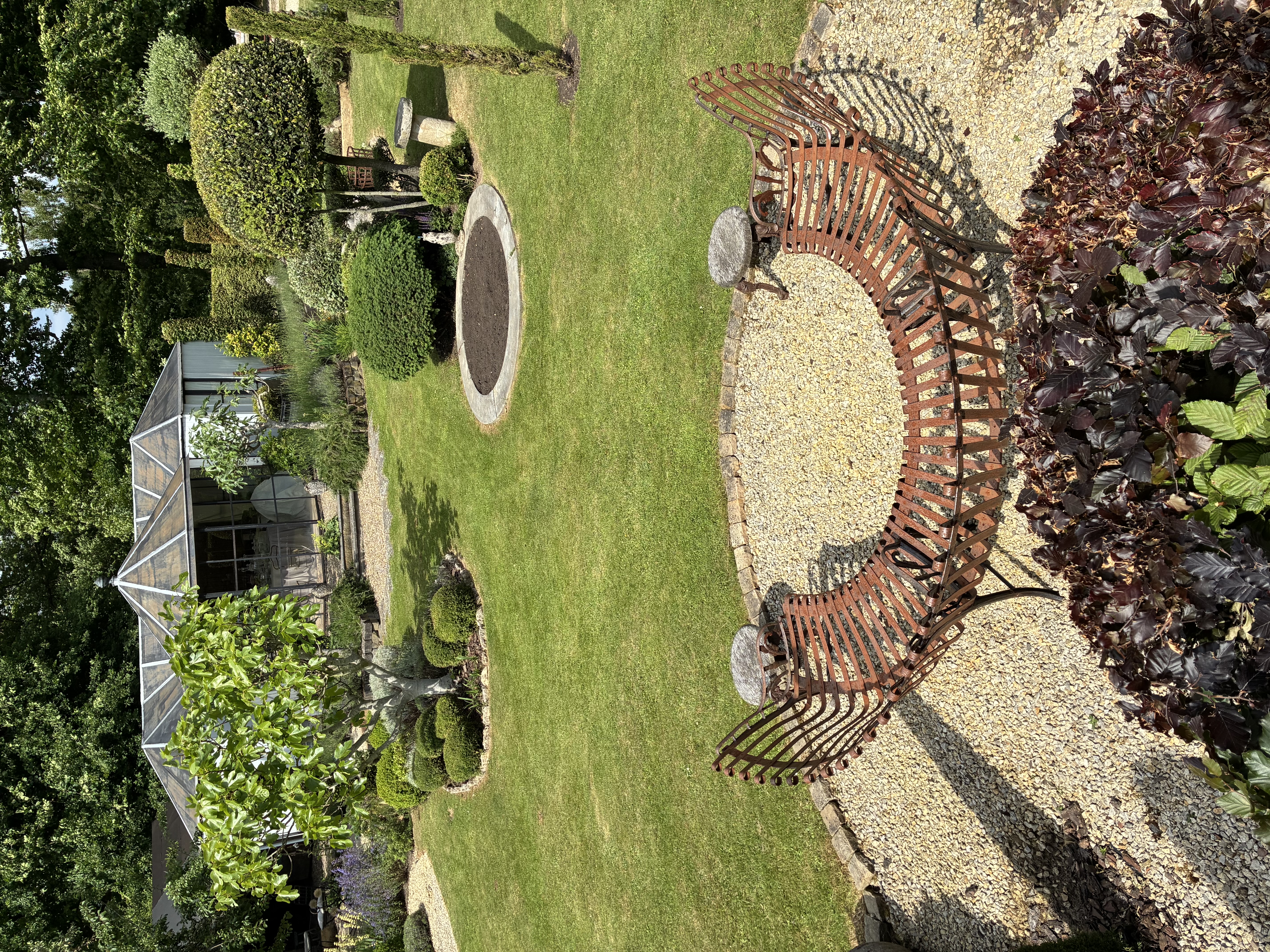Niveauverschil, vormsnoei en speels groen bepalen hier het silhouet en creëren rust en balans. Een grote fontein staat centraal omgeven door diverse hoger gelegen terrassen waar het goed toeven is met en lekkere kop koffie en zelfgebakken vla.
