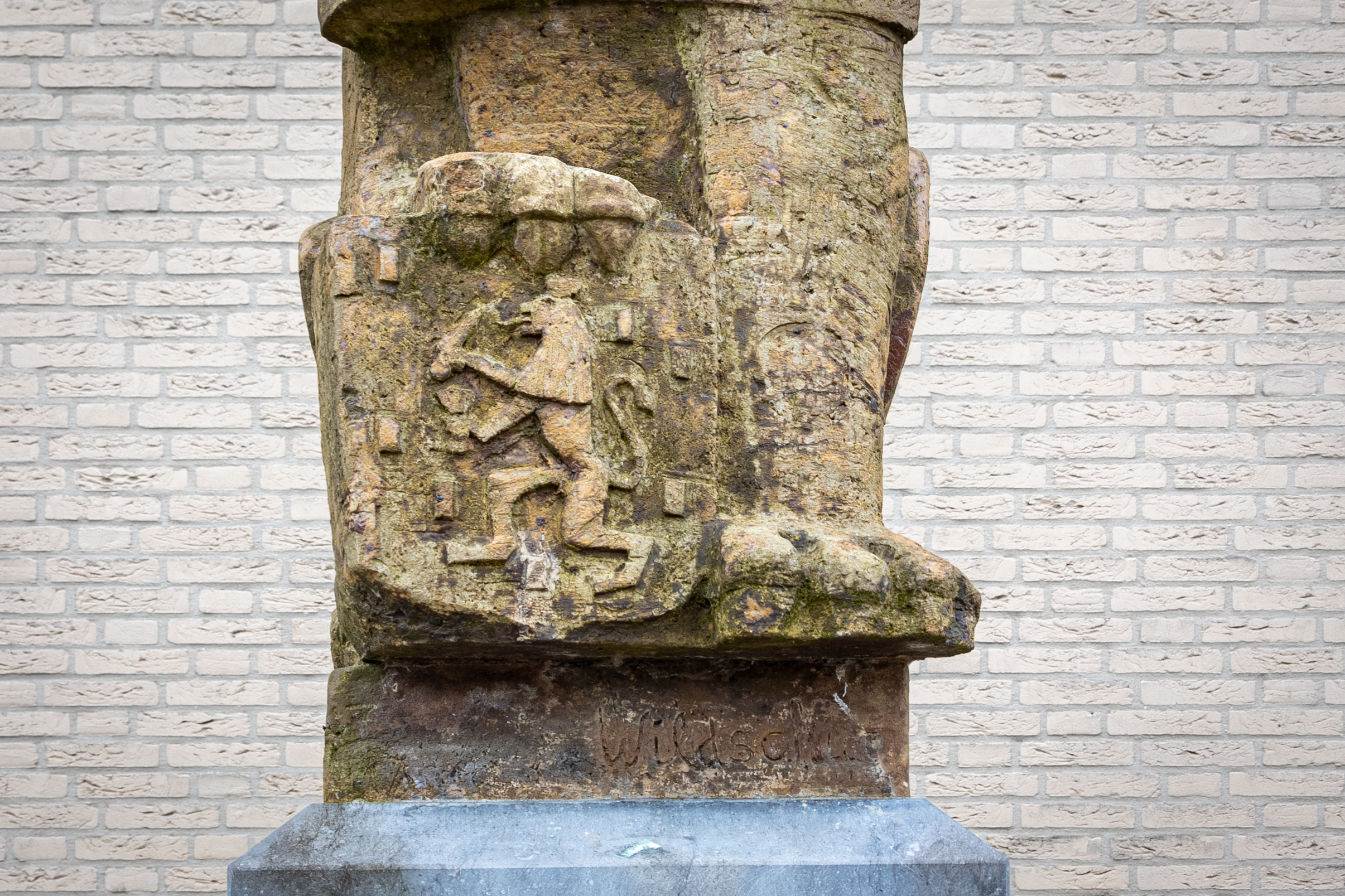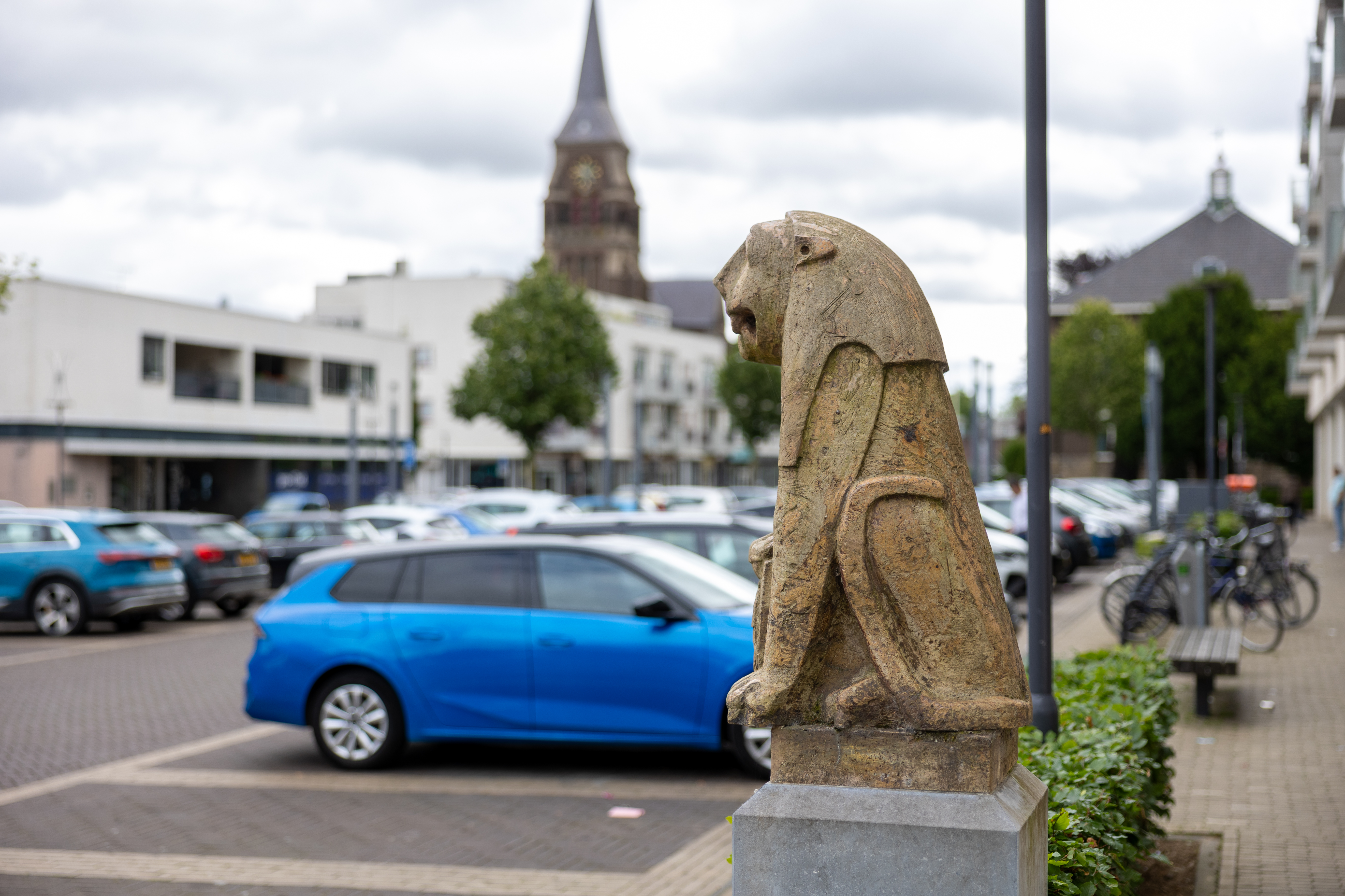 De kunstenaar is Daan Wildschut. Het beeld stelt de Nederlandse leeuw voor. In het kader van een wettelijke regeling om jonge kunstenaars een kans te geven, werd dit beeld in 1965 naast het Rijkspolitiebureau in Ubach over Worms geplaatst. Daar stond het tot het politiebureau in 1985 gesloopt werd. Vanaf 1985 staat het op de Hovenstraat.