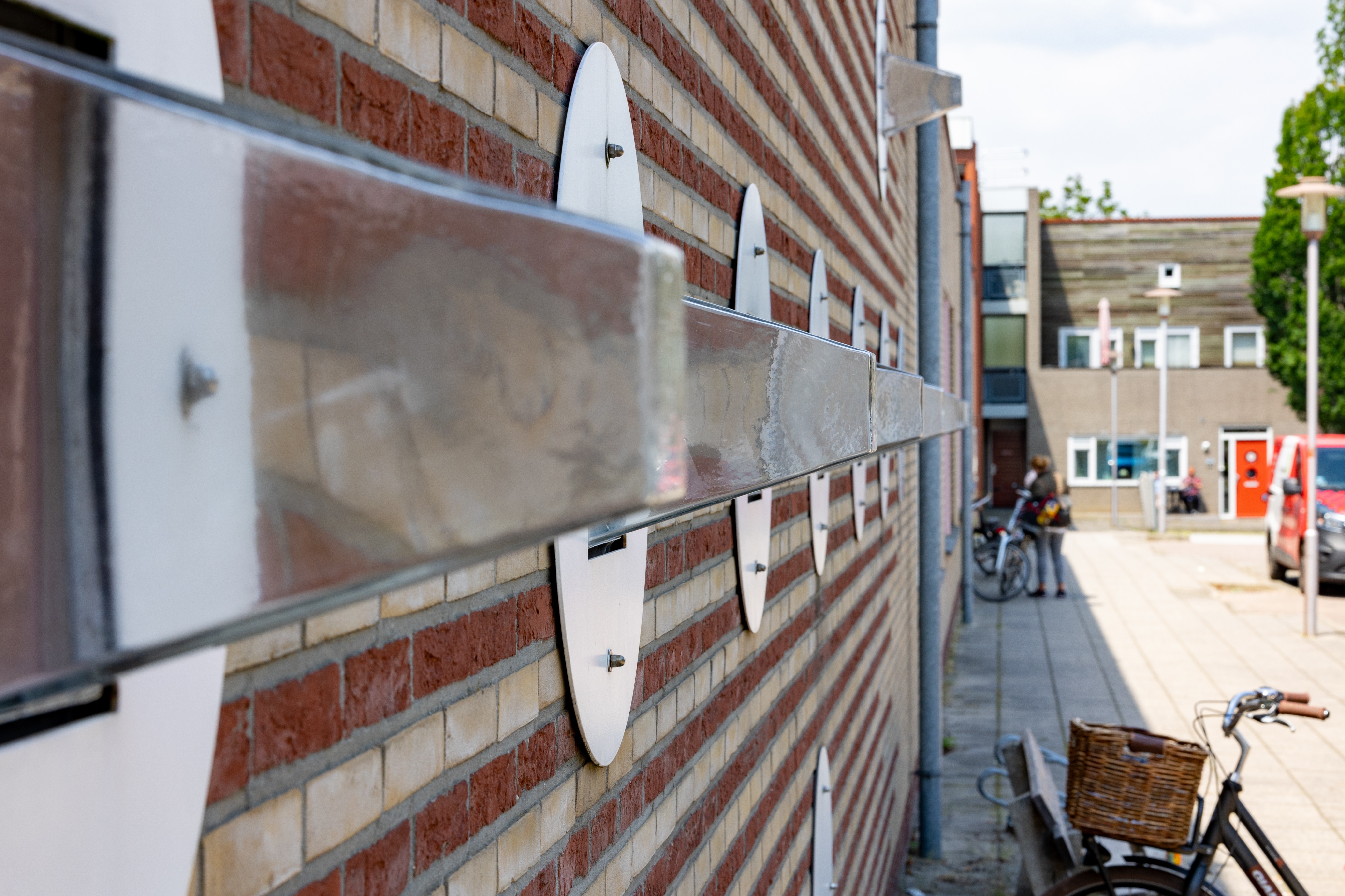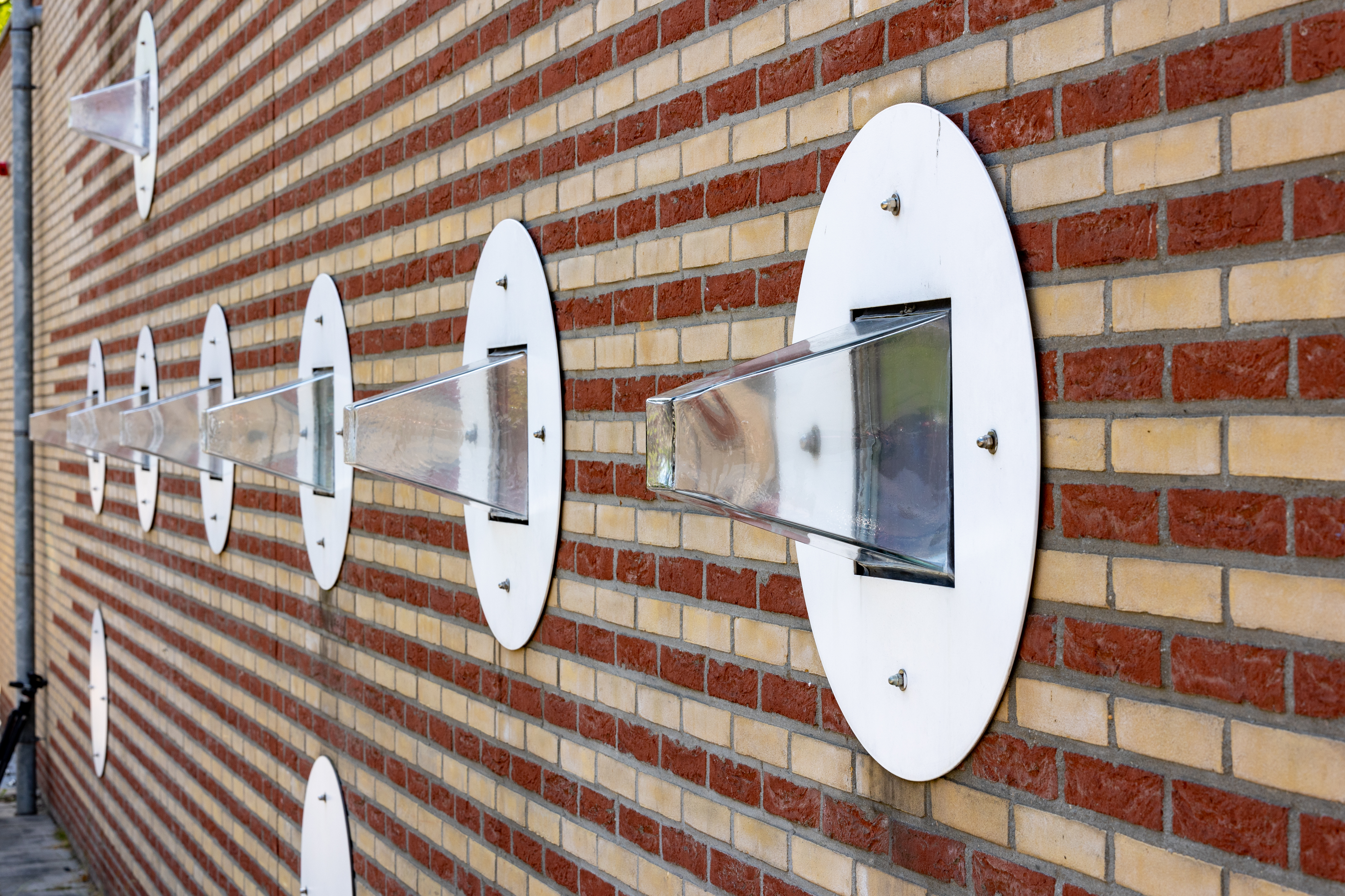 De kunstenaar is Ton Slits. Dit kunstwerk is gemaakt van glas en staal en is in 2000 gerealiseerd aan/in het MFC ‘An d’r Put’.