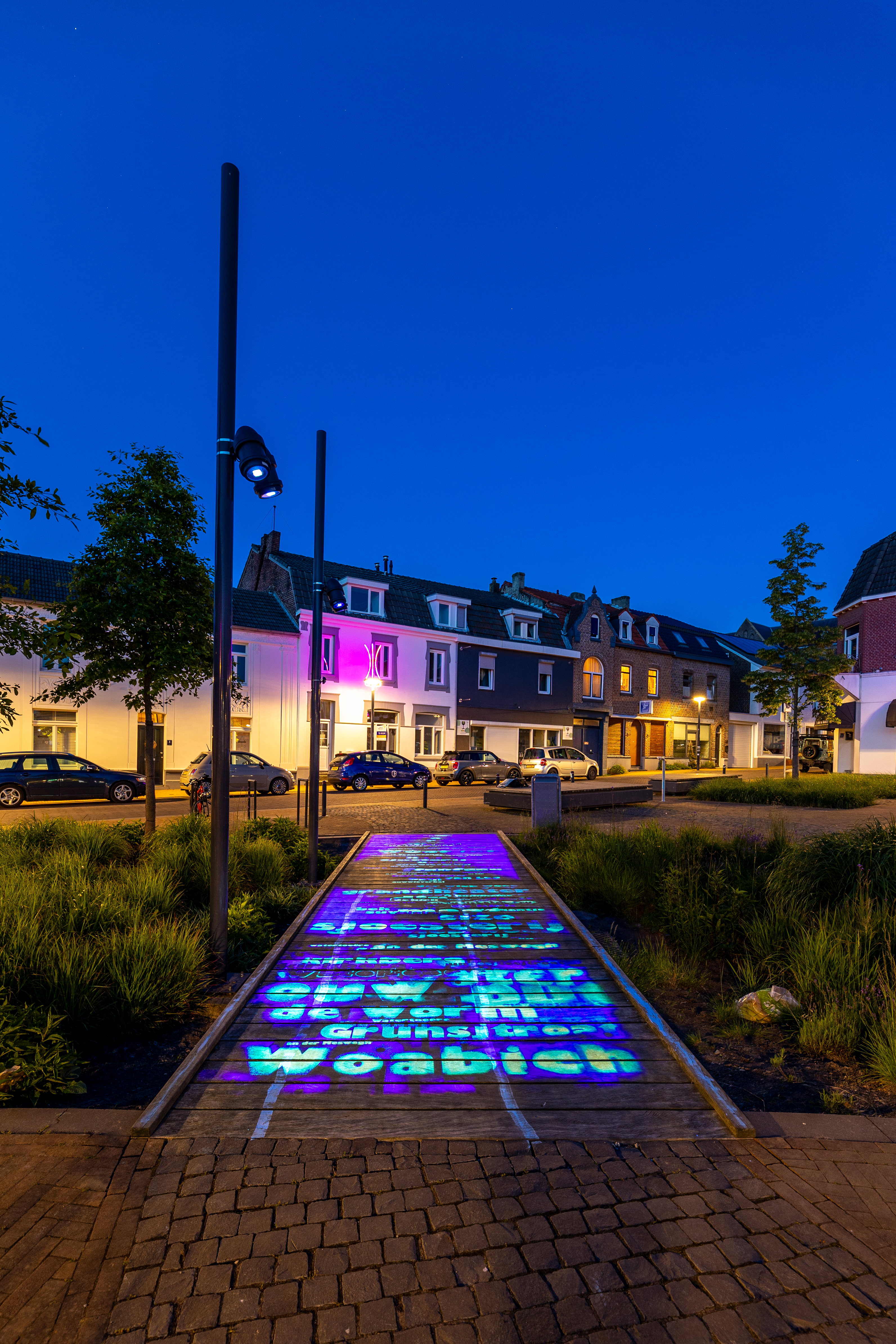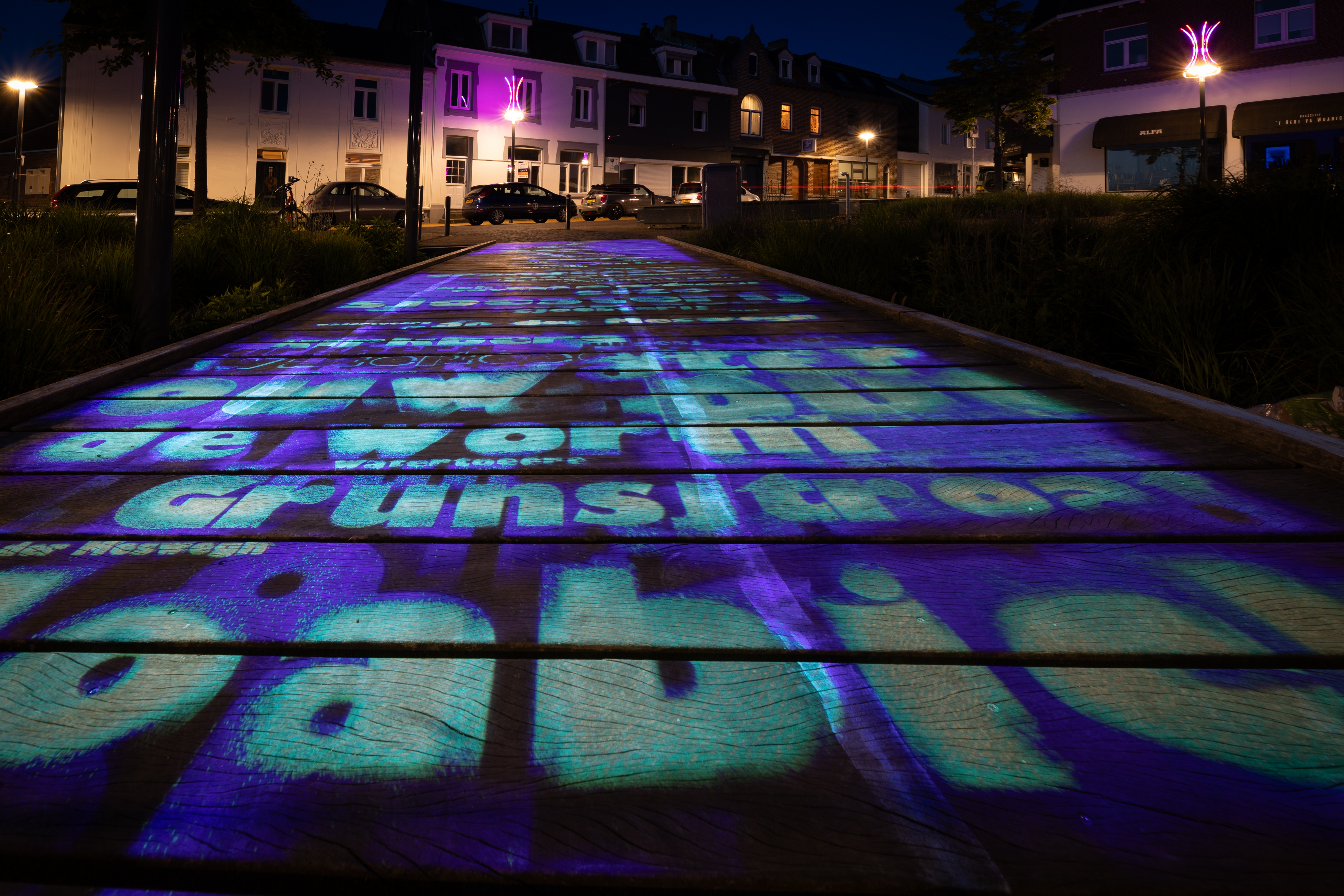 Het lichtkunstwerk is in 2021 in gebruik genomen. Het kunstwerk siert de houten brug over de wadi. Het draagt de naam een rivier van woorden. Het licht gaat aan als er bij de brug beweging wordt waargenomen.