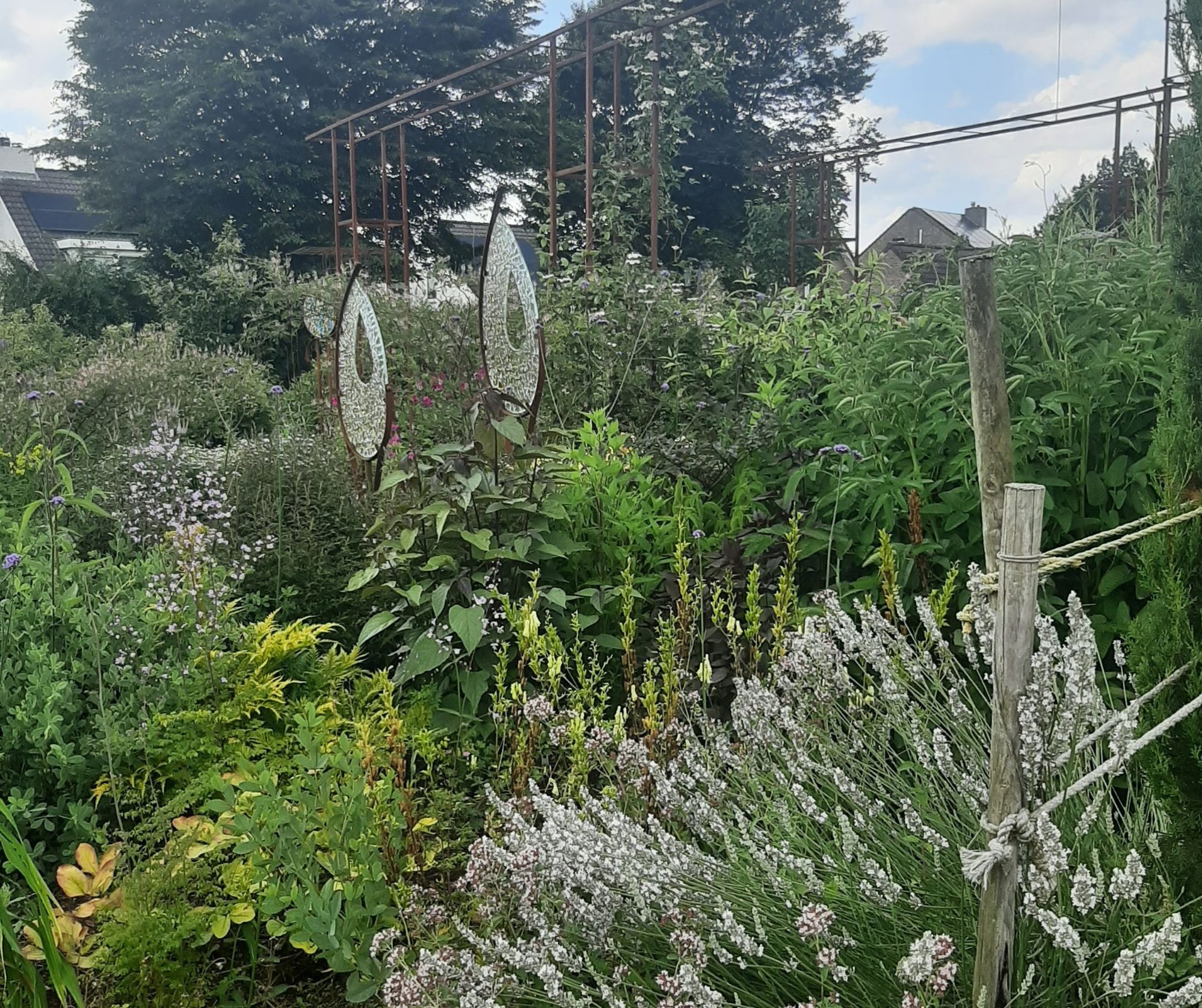 Er zijn vaste planten, rozen, heesters, klimplanten, honing en biologische) boeketten uit eigen tuin te koop.