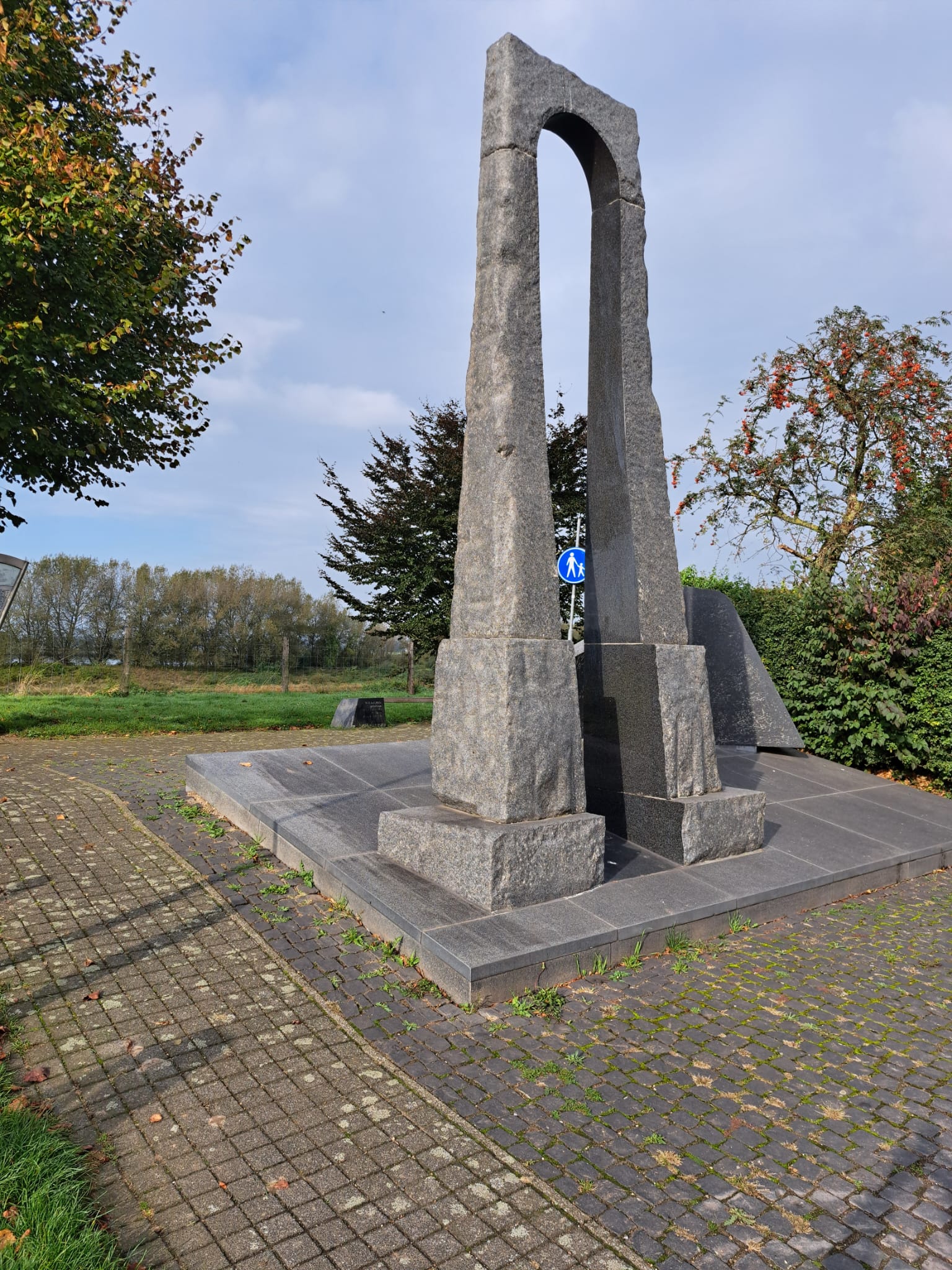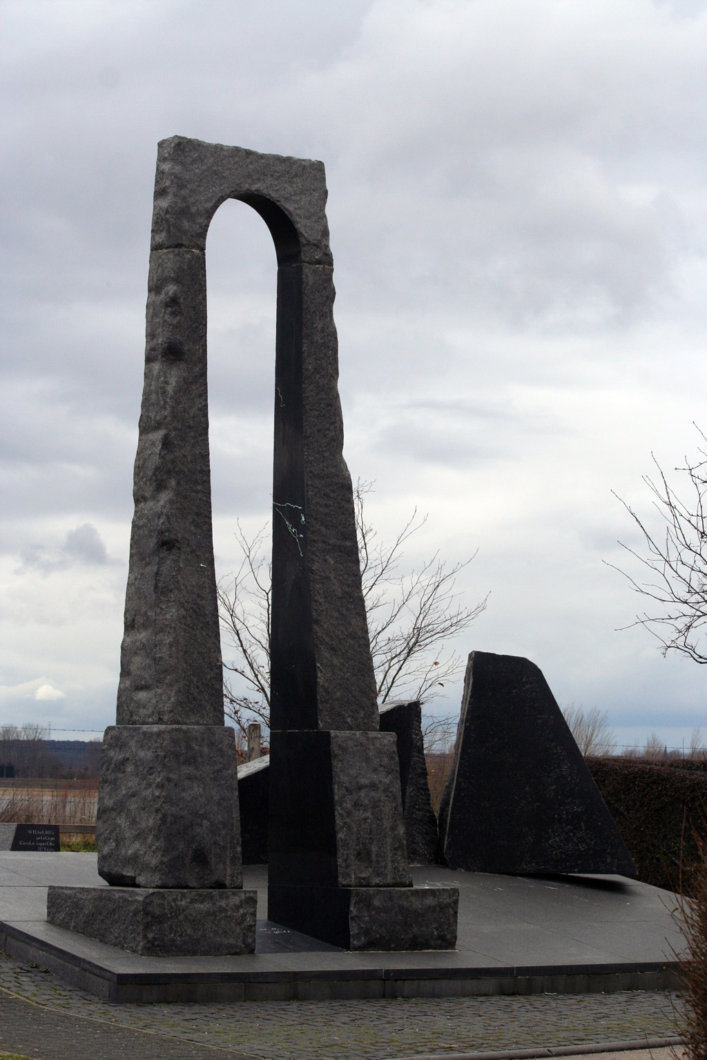 het monument staat een bankje bestaande uit twee granieten blokken en een