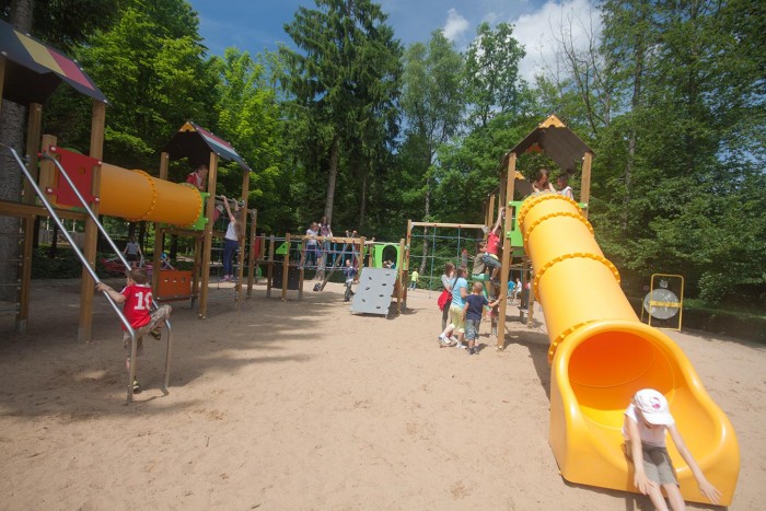 Deze speeltuin is bij consumptie geheel gratis om urenlang te spelen. Er zijn meerdere klimtoestellen met verschillende glijbanen aanwezig en er is zelfs een 100 meter lang parcours en grappig fotopunt voorhanden!