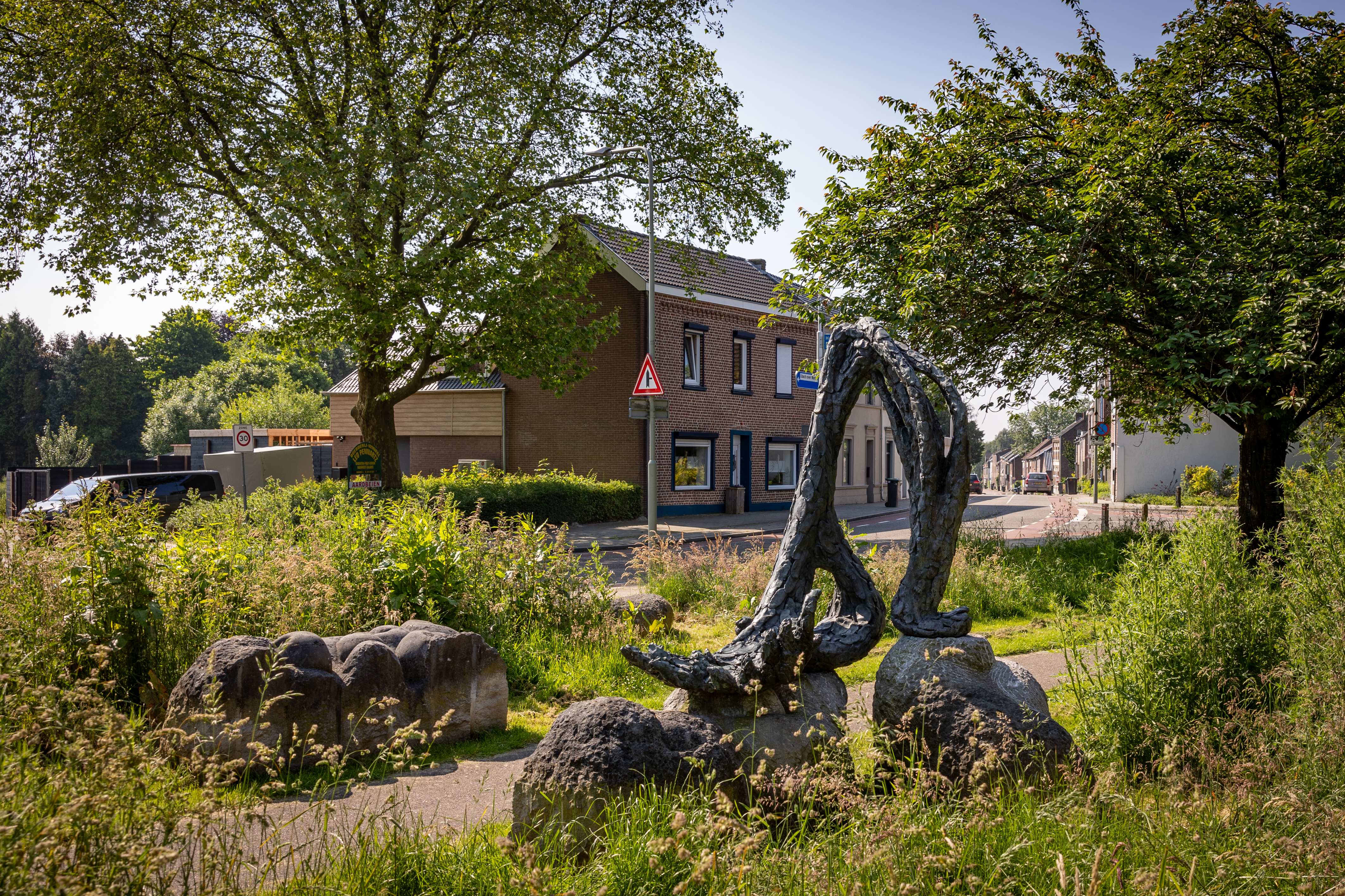 De kunstenaar is Juul Sadee. De beeldengroep is geplaatst in 1992. Het kunstwerk bestaat uit een aantal grote stenen van petit-granit.