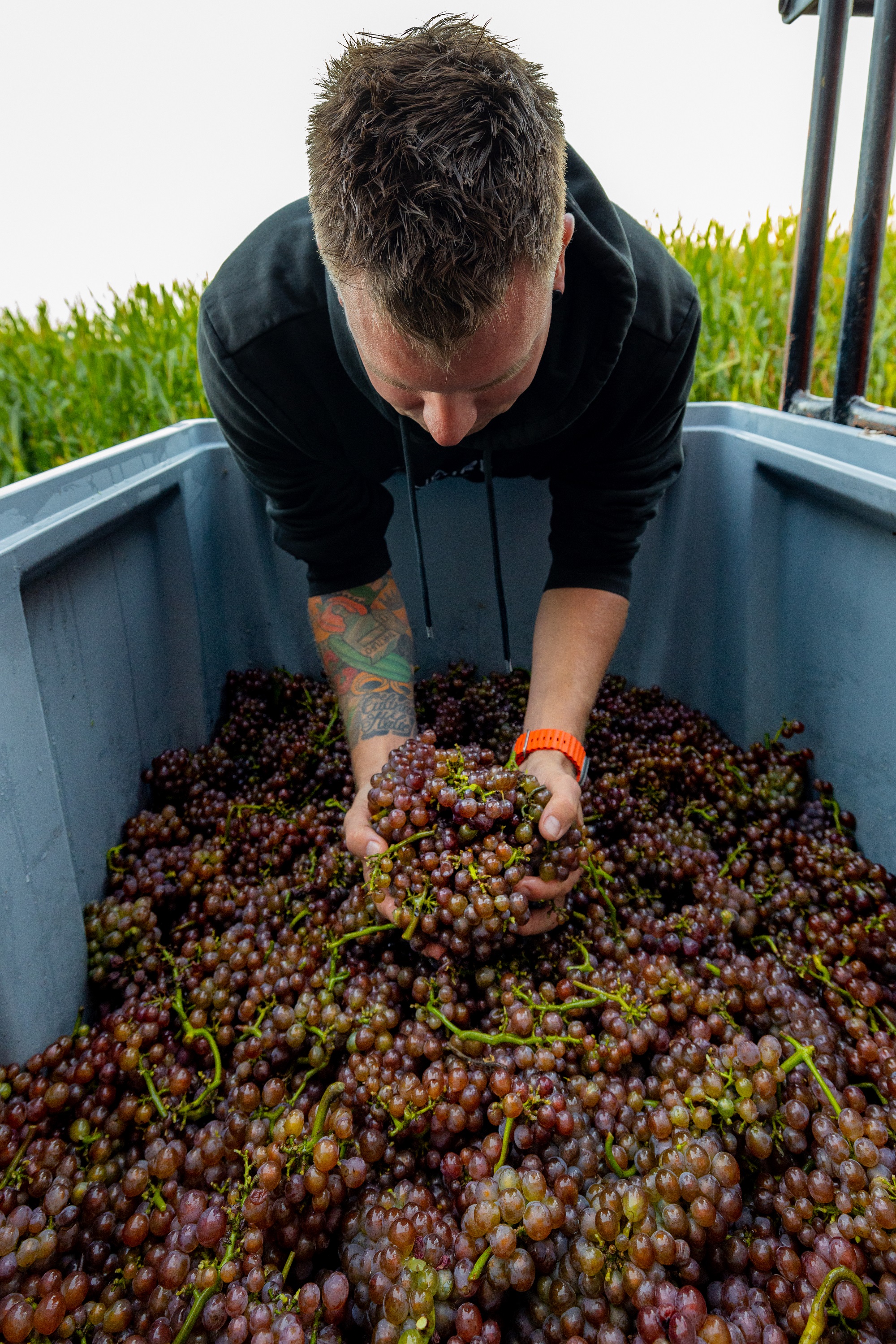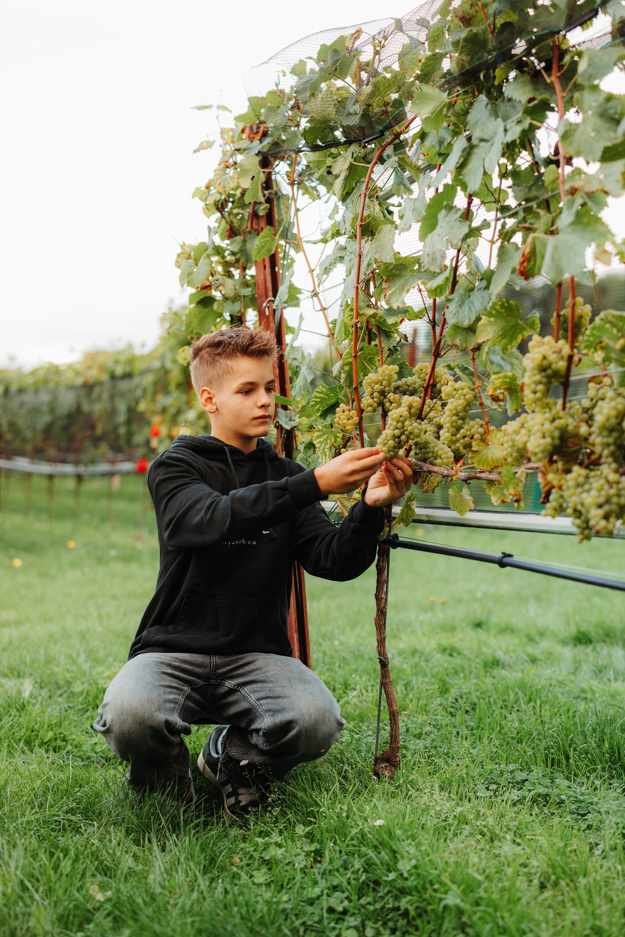 Iedere wijn heeft zijn eigen productieproces: de Pinot Gris grand cru wordt ‘opgevoed’ op groot hout. Onze Chardonnay rijpt op traditionele barrique uit de Bourgogne. De Grande Cuvée is een ‘bubbel’ van Chardonnay en Pinot Noir, Méthode traditionelle. En tot slot onze ‘Cuvée Lenoire’ maken we van een blend Pinot Blanc, Pinot Gris en Chardonnay.